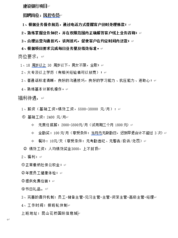 昆山建設銀行風控專員招聘公告