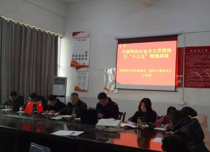 近日來,按照“不忘初心、牢記使命”主題教育和三會一課的要求,校黨委委員、組織人事處處長王宏偉以慶祝建黨一百周年為主題,為商貿與電子信息係黨支部講了題為《中國特色社會主義思想指引“十三五”輝煌成就 》的專題黨課。商電係支部書記主持專題黨課。