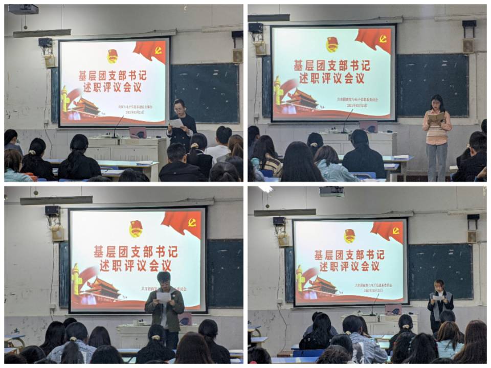 會議由商貿與電子信息係團總支副書記趙韋主持,由20級團支部書記依次進行述職,此次報告會議正式開始。各支部書記主要從履職主要情況和工作成效、存在的主要問題及原因、下一步工作思路和主要措施等方麵進行述職。團支書們認真自信,闡述條理清晰,分別從主題團日活動、智慧團建、青年大學習、在線大學生黨史答題、社會實踐、誌願服務、創新創業等方麵就一學期以來工作中遇到的難點和存在的不足進行了總結,並對本班級團組織基本職責和工作情況進行認真報告,展現了各團支部積極向上的學習態度以及豐富多彩的課外活動。各位團支書也客觀的總結了自己的成績,在定位自身的同時,也提出了未來的目標。