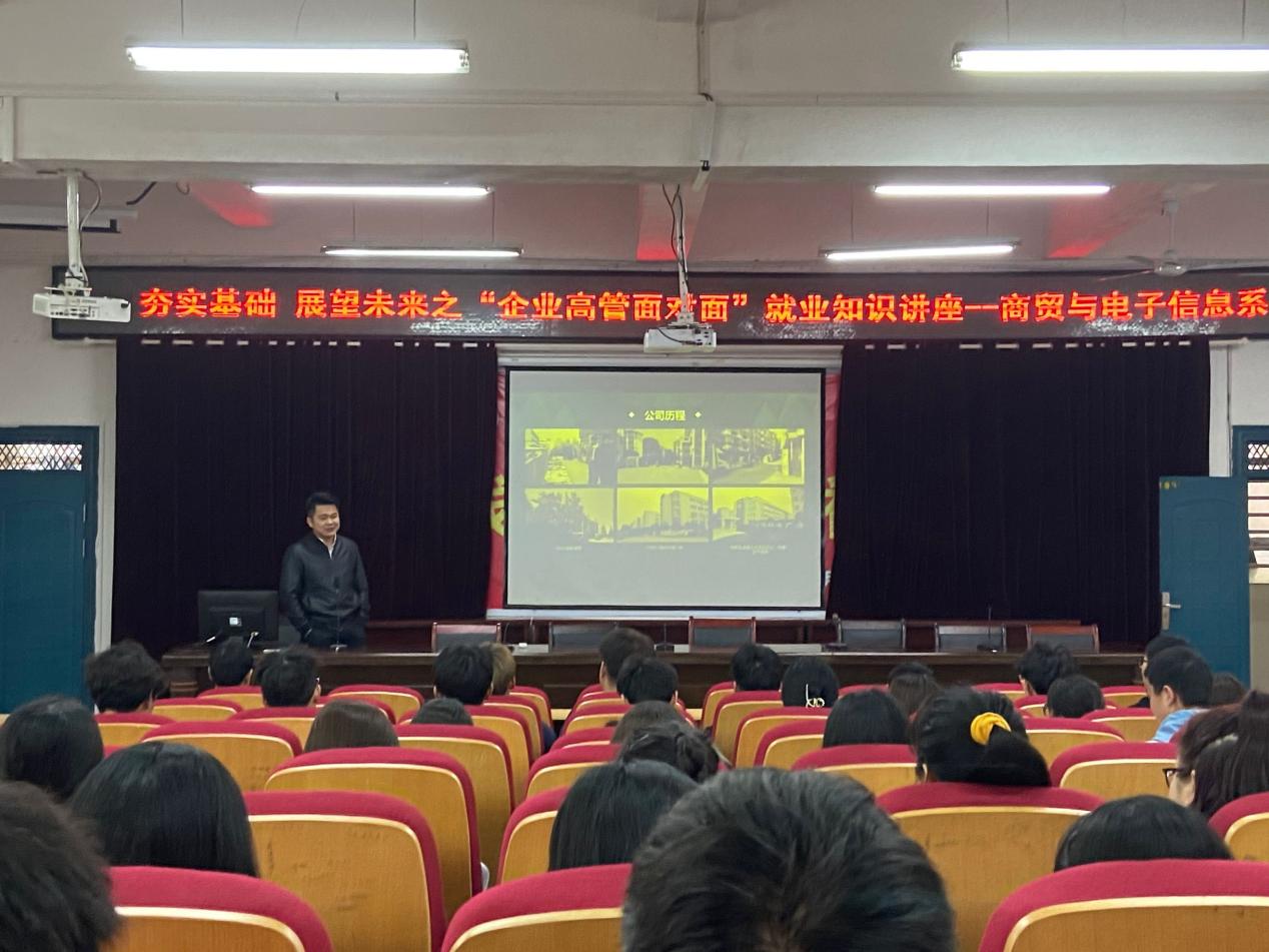 此本次講座主要針對電子商務的來龍去脈、當下行業的發展門檻、新媒體時代的機遇、當代電商人應該具備的職場素質、行業未來發展趨勢等層麵進行了深度剖析,以及在校學生如何做好學習規劃、如何鍛煉自己變成準職業人、進入職場後的職業發展和職業規劃等方麵對學生進行了分享和解答。