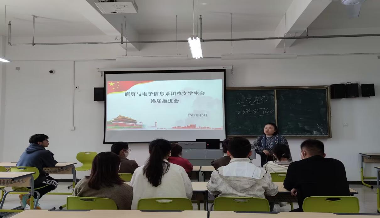 為保障商貿與電子信息係學生會工作的連續性,培養一批新的學生會幹部,充分發揮學生會的自主意識,大力促進校園文化建設,為給學生會注入新的血液,培養和壯大學生會隊伍。2022年10月20日於毓秀樓208開展了商貿與電子信息係學生會換屆推進會議。本次會議由商貿與電子信息係團總支學生會組織,團總支書胡豔豔老師主持,商貿與電子信息係主席團和學生會各部門負責人參加。