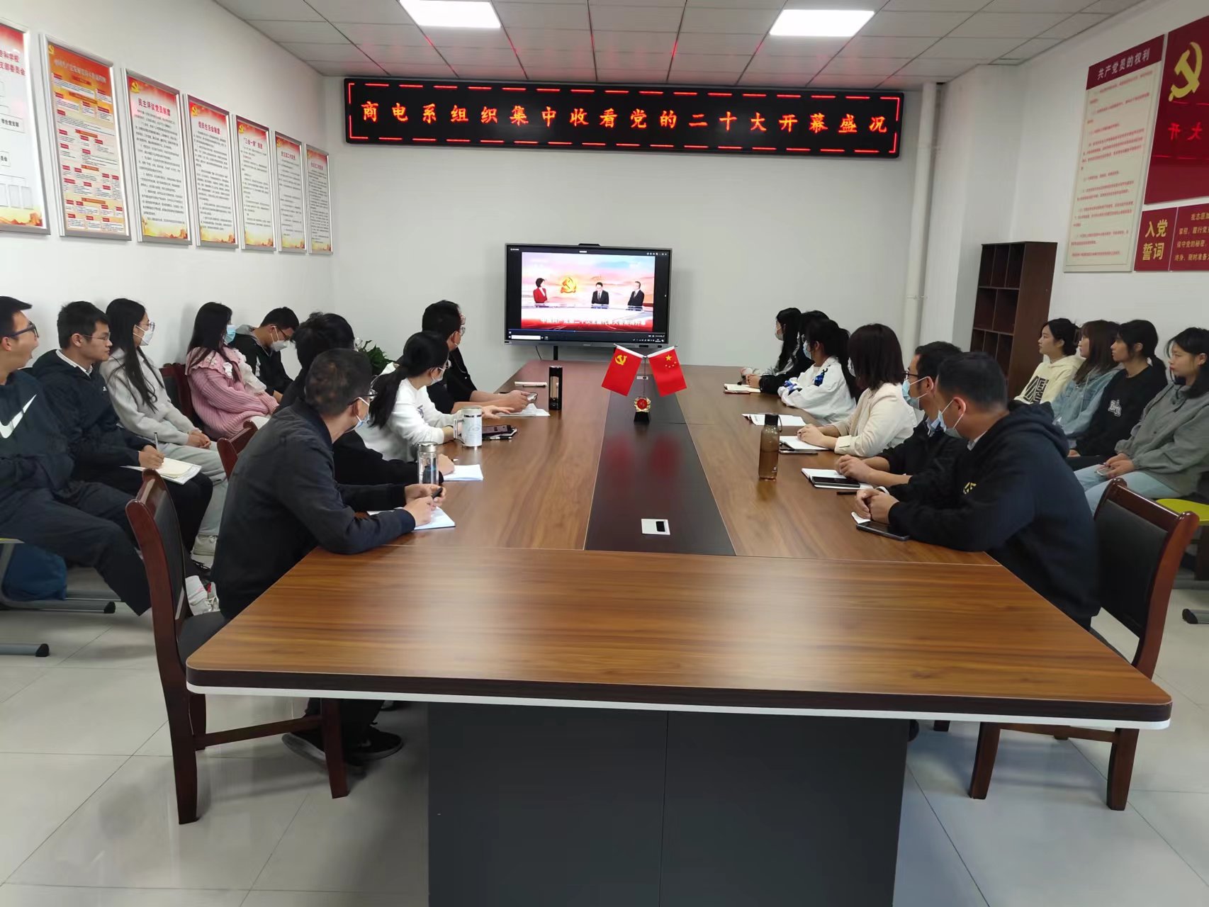 10月16日上午10時整,中國共產黨第二十次全國代表大會在京隆重開幕。商電係黨員同誌、入黨積極分子、學生代表在黨員活動室集中觀看了開幕會盛況,共同聆聽習近平總書記所作的大會報告。上午9時未到,觀看人員已經備好筆記本,依次就座。