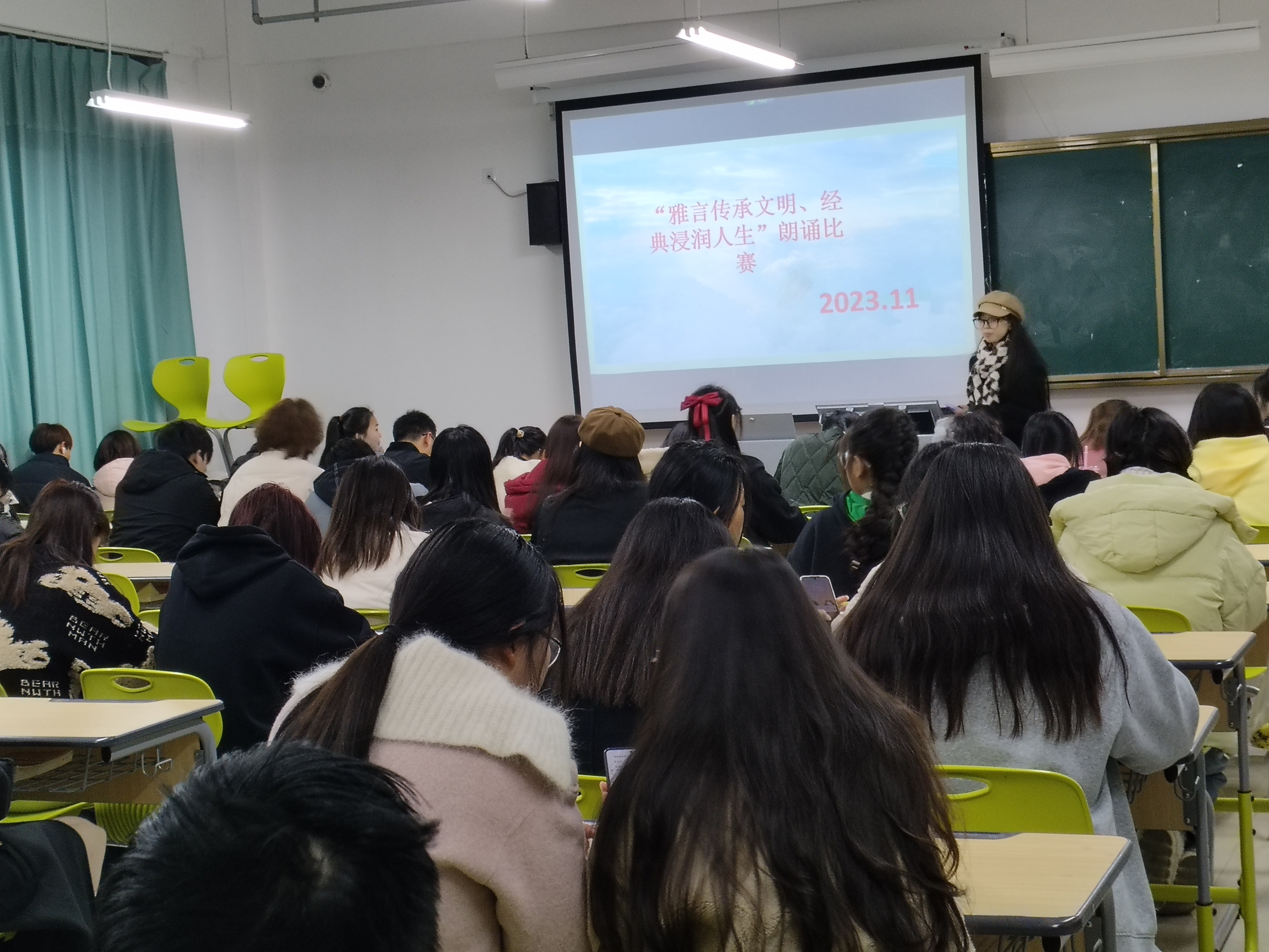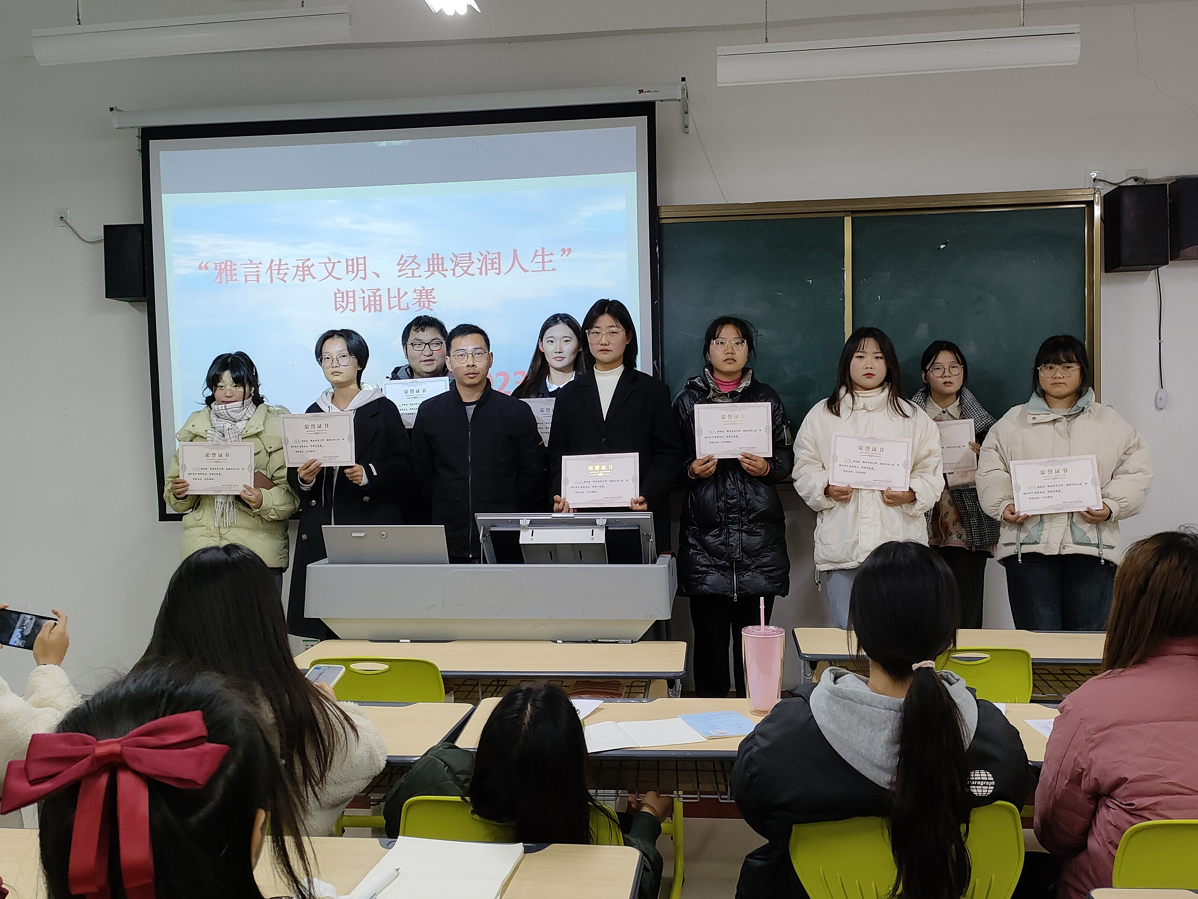 共讀中華經典,聆聽古詩書韻,12月3日晚上,商貿與電子信息係在毓秀樓113教室舉行“雅言傳承文明,經典浸潤人生”朗誦比賽,旨在通過誦讀國學經典,讓學生們深入了解中華文化的博大精深,感受國學的魅力。