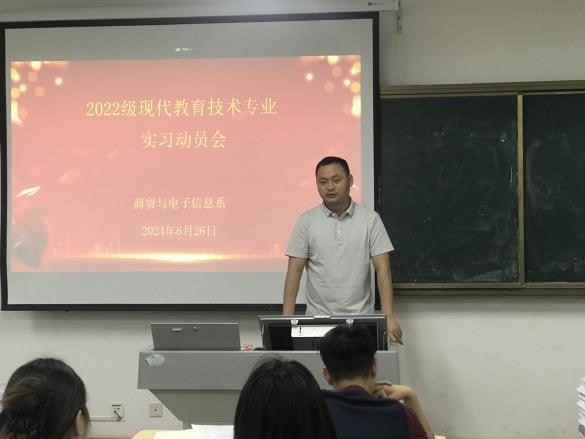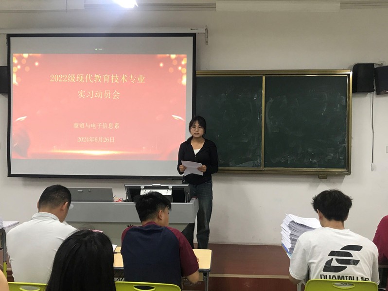 為進一步落實立德樹人根本任務,提高實習實踐育人質量,加強學生對實習的認知和了解,引導學生做好實習準備,確保實習工作的順利開展,626日,商貿與電子信息係在毓秀樓110教室召開了高專22級現代教育技術專業實習動員大會。