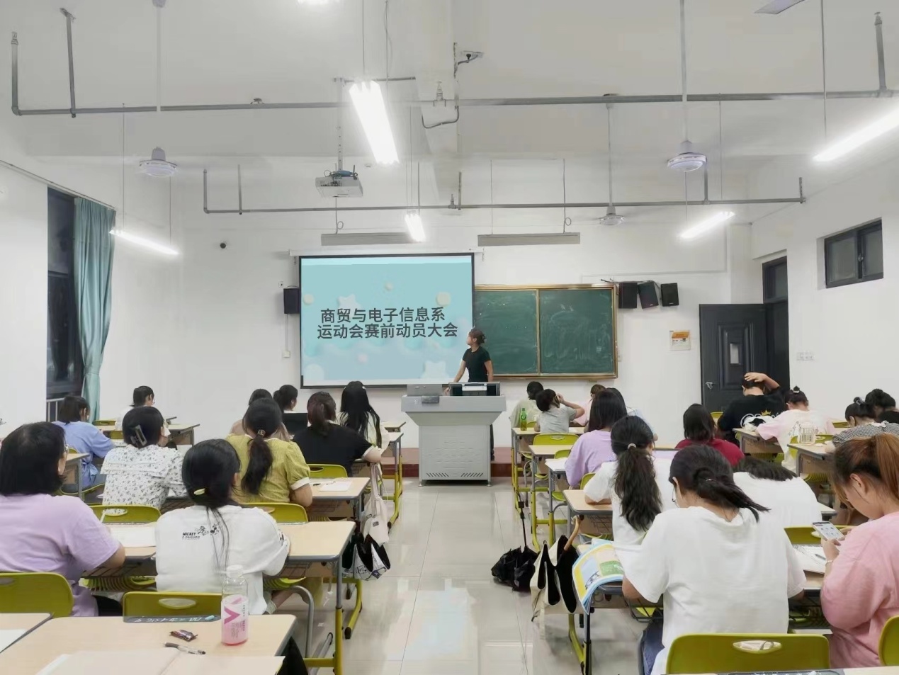 為了培養德智體全麵發展的人才,增強學生體質,培養學生拚搏精神,推動我國體育事業發展,我校舉辦了第十二屆秋季運動會。為順利舉辦運動會,確保運動員的人身安全商貿與電子信息係學生會於10月27日下午6點在毓秀樓109教室開展了賽前動員大會,參加此次會議的是商電係全體運動員及團總支學生會的相關負責人參加,此次會議由學生會執行主席張鑫彤主持。