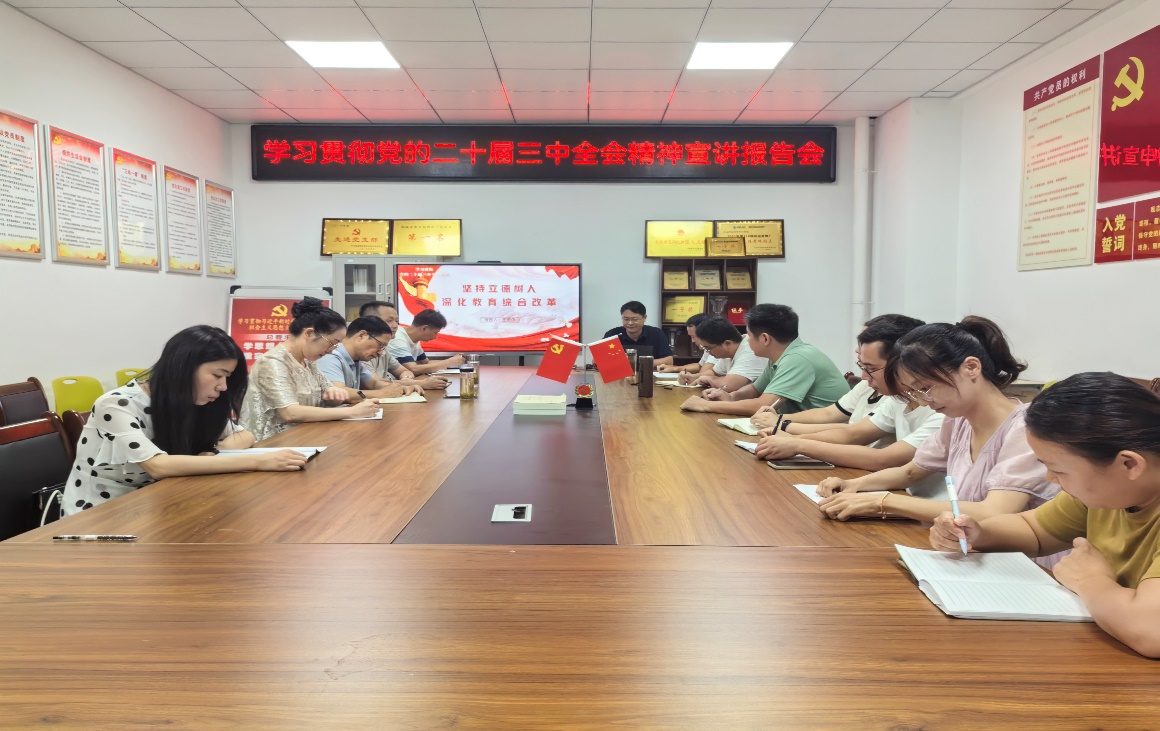 9月20日上午,學校黨委委員、副校長王宏偉為商電係全體黨員作題為《堅持立德樹人,深化教育綜合改革》學習貫徹黨的二十屆三中全會精神專題宣講報告會,宣講會由商電係黨總支書記江向中主持,教務處、圖文信息中心基層黨組織的黨員參加會議。