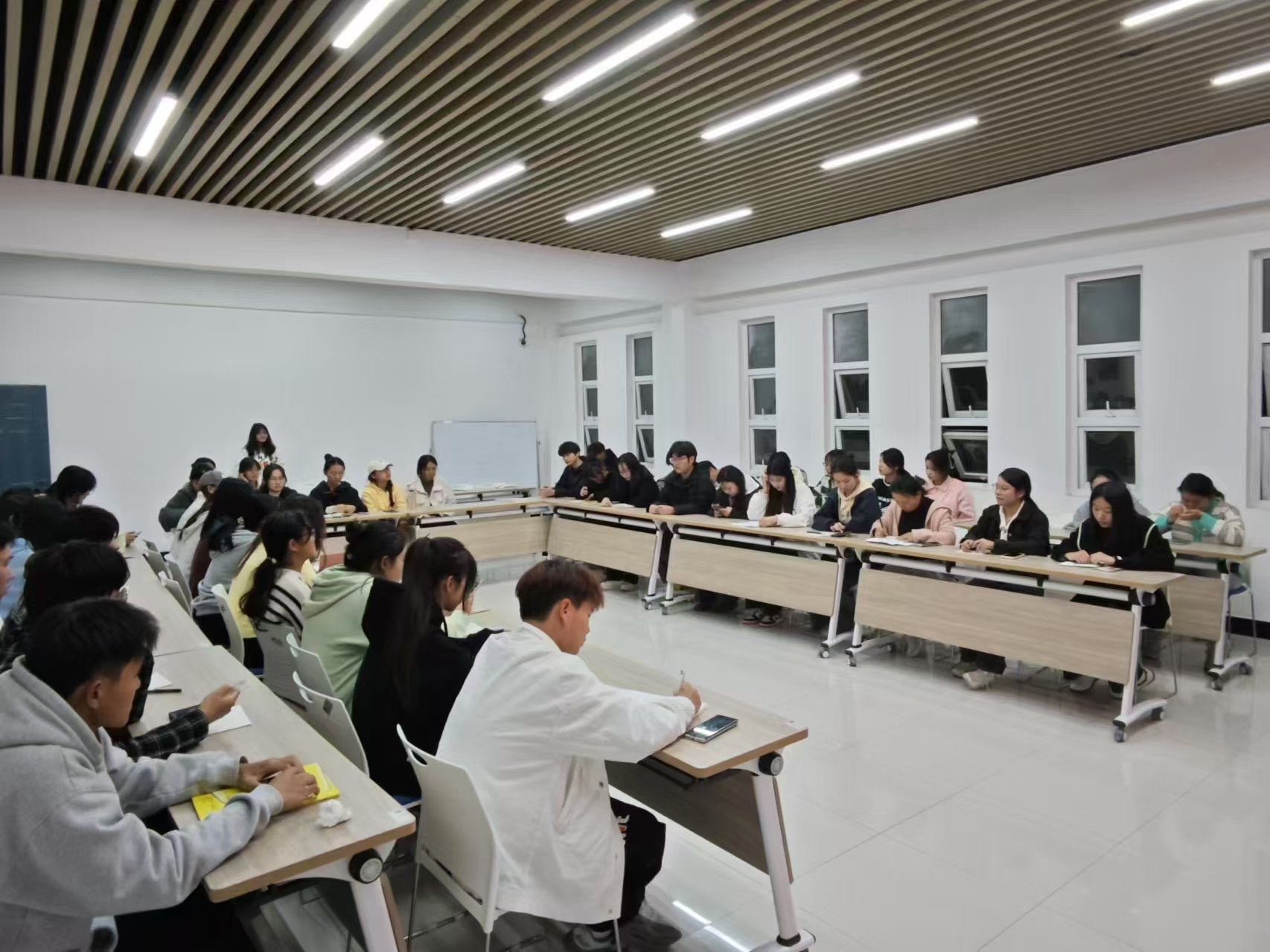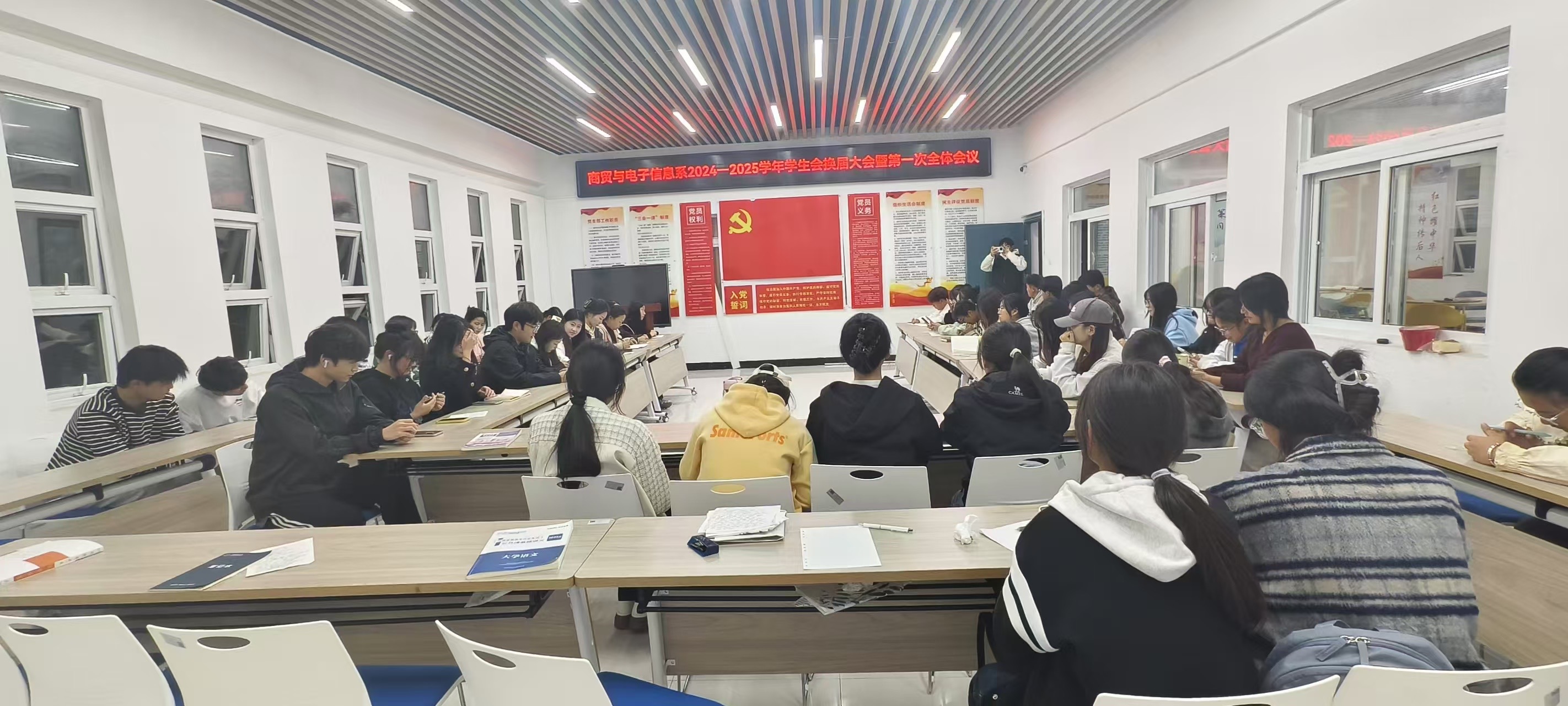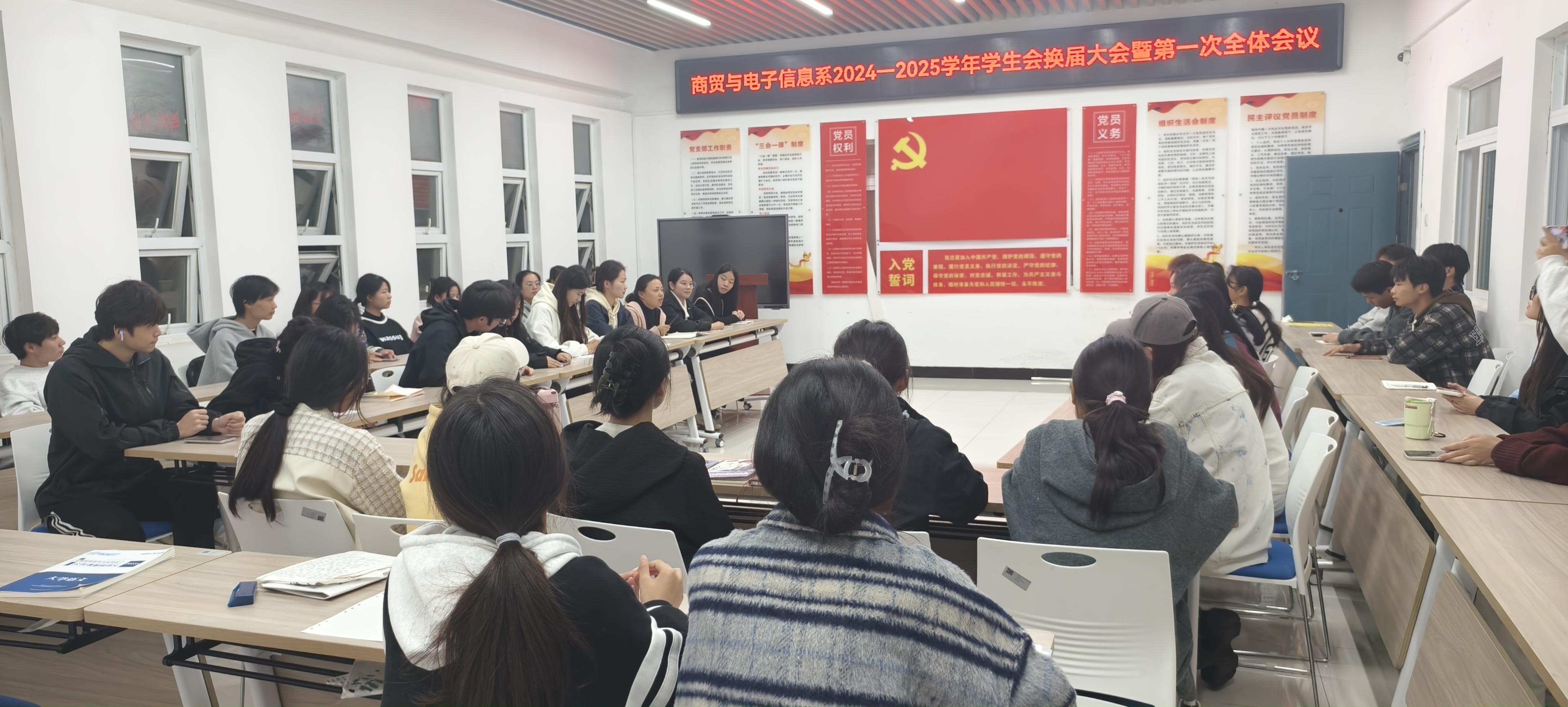 青春不打烊,換屆展新顏。2024年11月5日晚,在5-6號樓一站式社區舉行的商貿與電子信息係團總支學生會換屆大會圓滿落幕。此次會議,不僅是對過去一年學生會工作的總結與回顧,更是對新一學年學生會工作的展望和期待。我係團總支學生會全體成員參與了此次會議,由團總支副書記彭子婕主持。