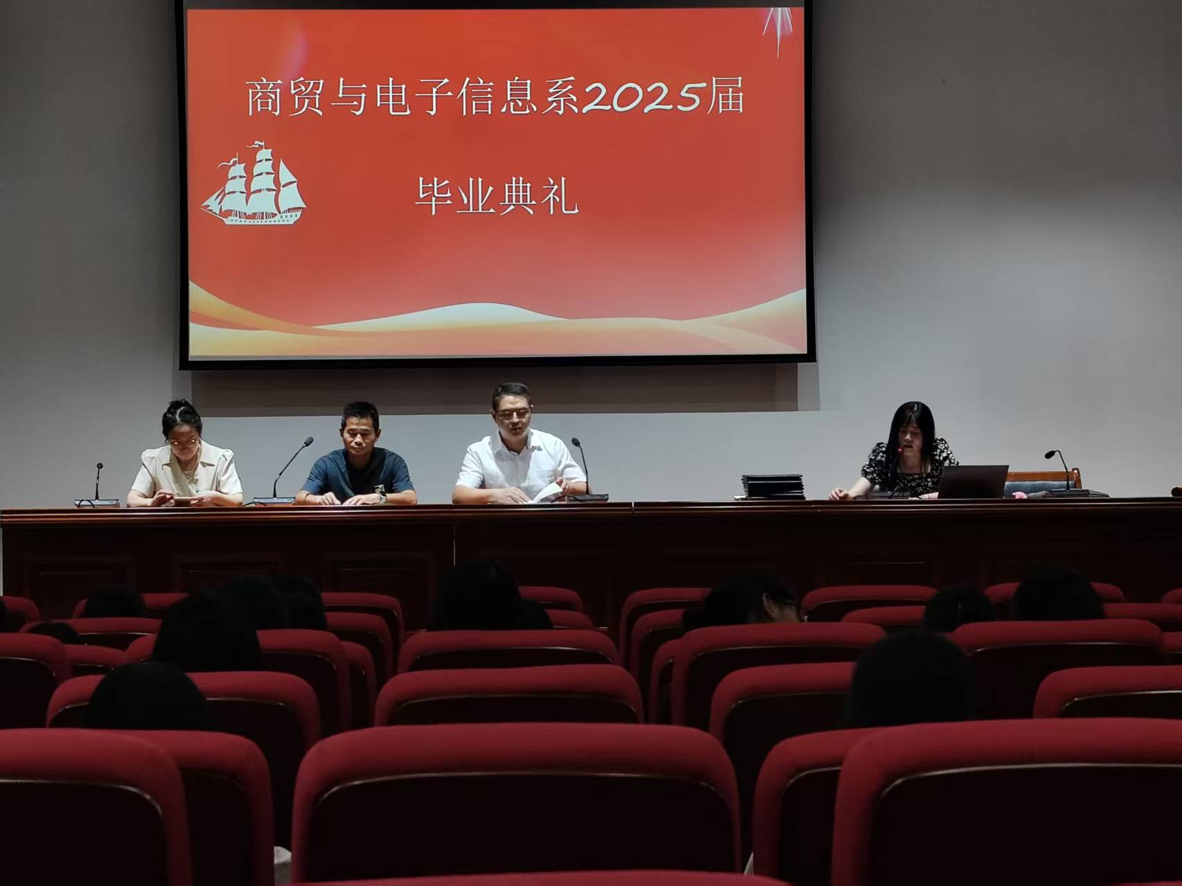 歲月如梭,轉眼又一屆學生即將離校,翻開他們人生新的篇章,為營造溫馨和諧的畢業氛圍,加強對畢業生的人文關懷,將畢業生的熱情引導到感恩母校、立誌成才和服務國家建設的實際行動中來,商貿與電子信息係於6月25日在其昶樓報告廳舉辦2025屆學生畢業典禮。