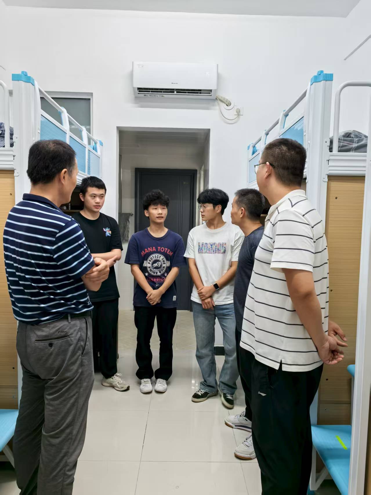 走訪過程中,係領導與新生們麵對麵交流,詳細詢問住宿環境適應情況,從床鋪是否舒適、水電使用是否方便,到食堂飲食是否習慣,事無巨細地關心著新生的生活細節。