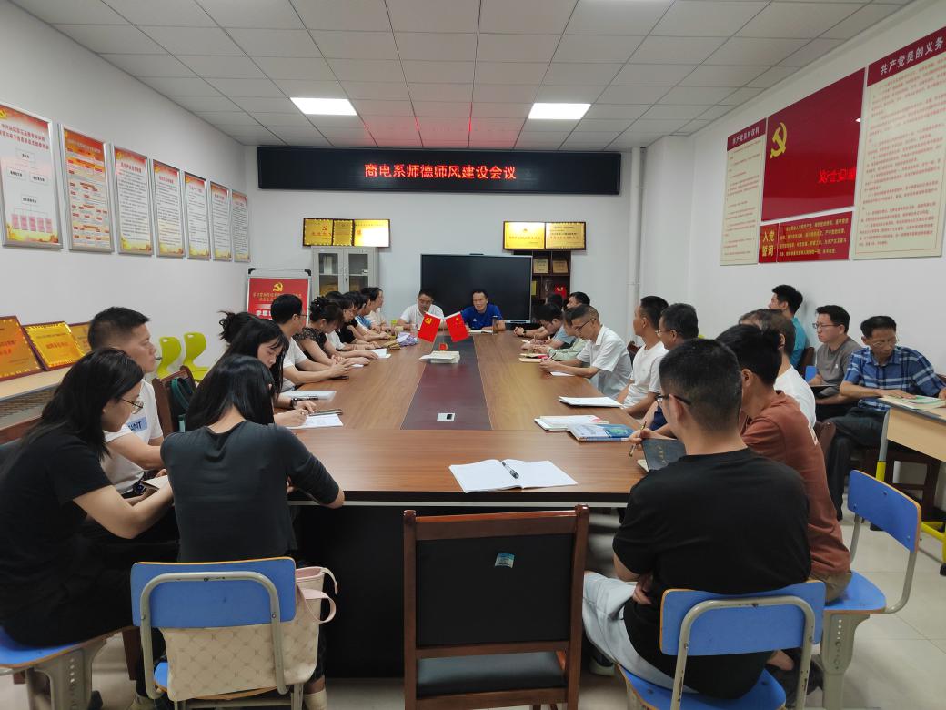 在專題學習環節,商電係黨總支專職組織員齊美義帶領大家學習了《新時代高校教師職業行為十項準則》《商電係師德師風失範及處理辦法》等文件,結合係部實際情況,對教師在日常教學、師生交往等方麵的行為規範提出了明確指導。