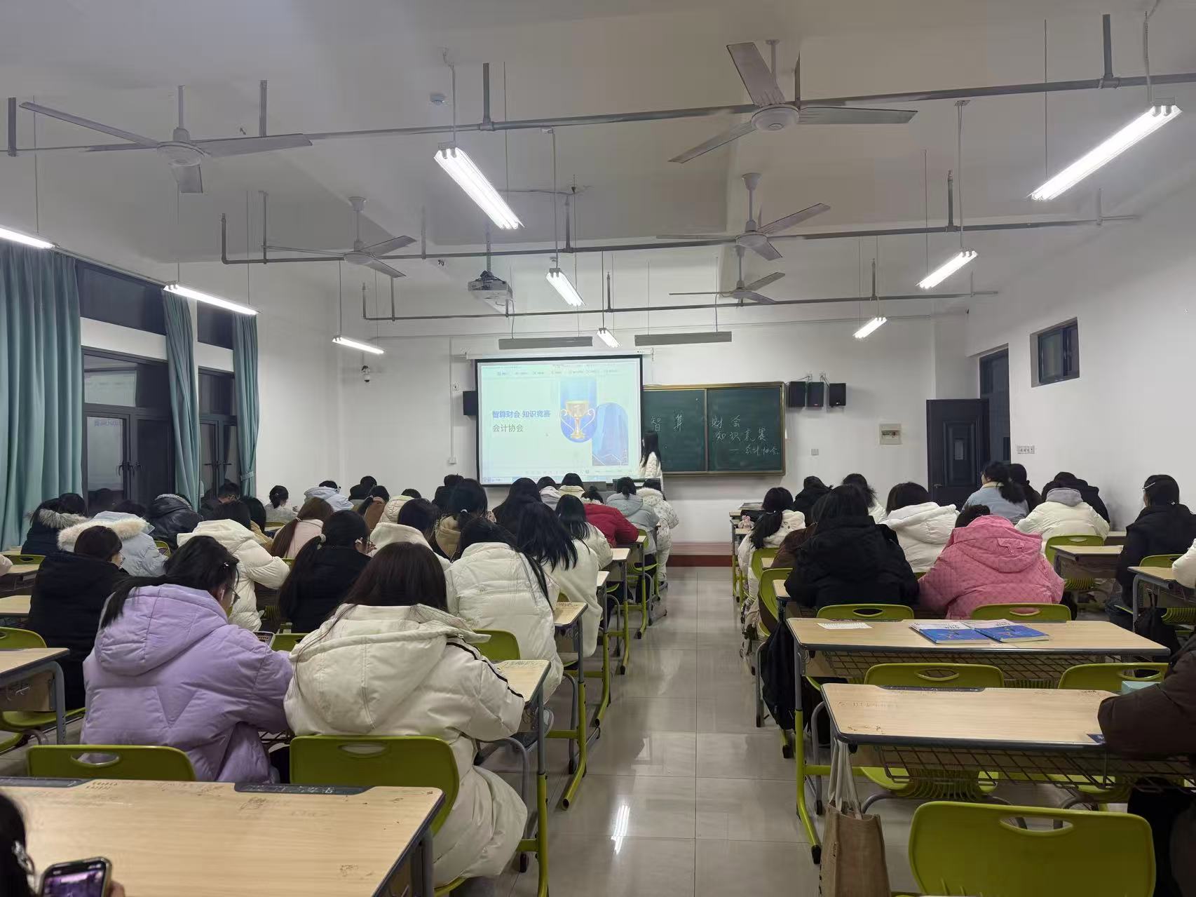 2025年12月4日晚7點,商貿與電子信息係會計協會在毓秀樓402舉辦“智算財會”知識競賽,24級、25級在校學生參加。