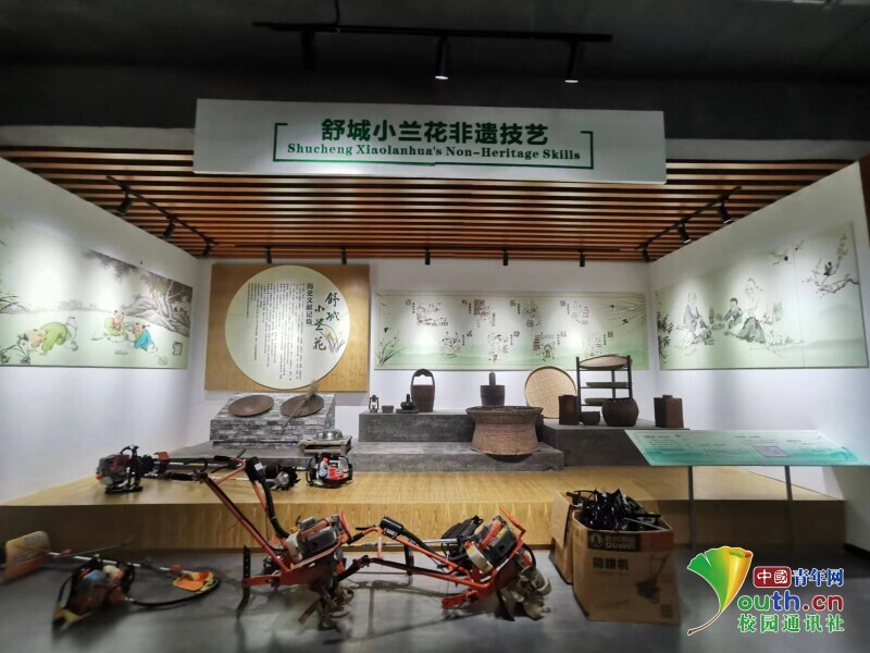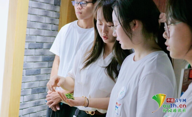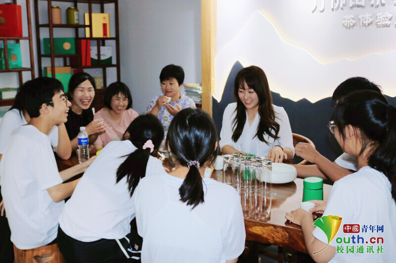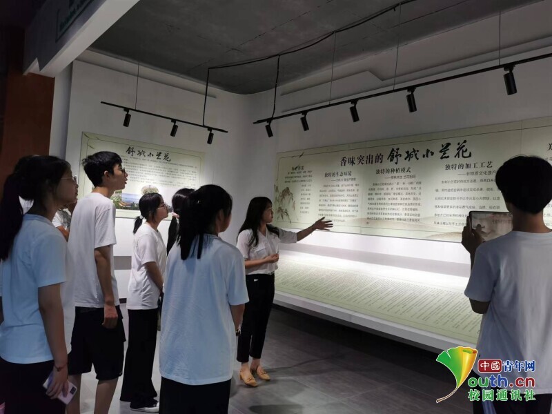 圖為小組成員在茶文化館內聆聽舒城小蘭花的曆史。