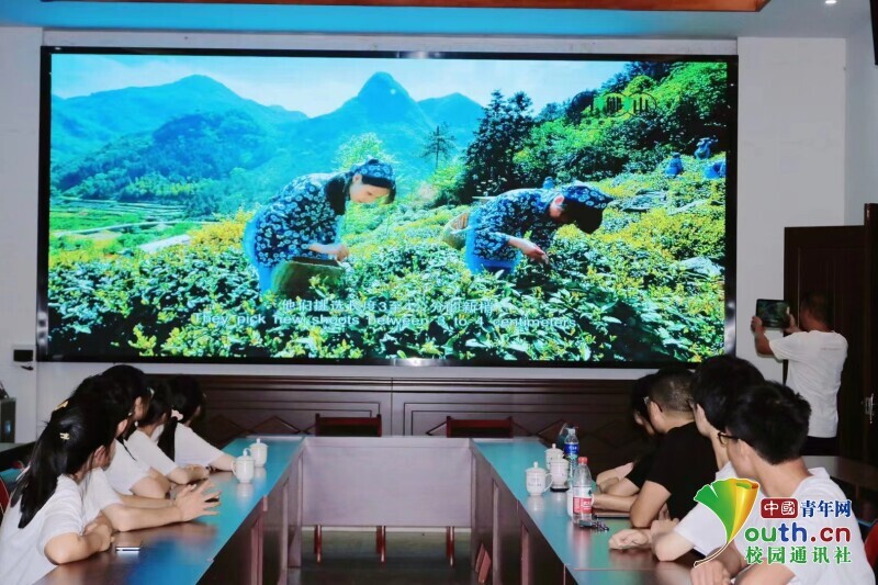 圖為小組成員觀看舒城小蘭花宣傳片。