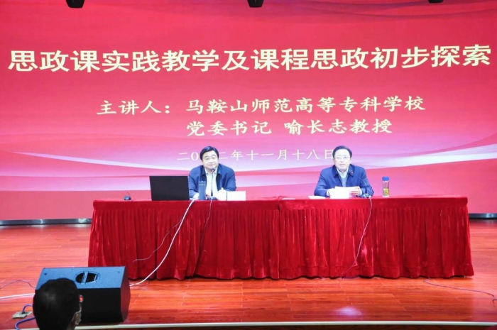 喻長誌教授以“思政課實踐教學及課程思政初步探索”為主題,圍繞思政課程和課程思政介紹了具體的工作思路和行動舉措,尤其是在辦學治校方麵,結合馬鞍山師專實現高質量發展的一些成功的經驗和做法,給大家做了精彩的報告,分享了寶貴的經驗。
