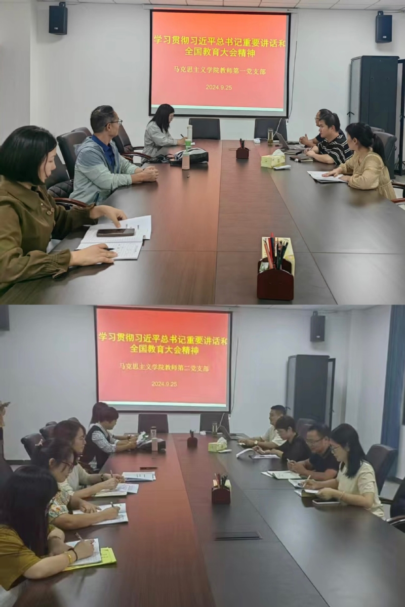 9月25日,馬克思主義學院教師第一黨支部和第二黨支部分別組織全體黨員學習貫徹習近平總書記重要講話和全國教育大會精神。