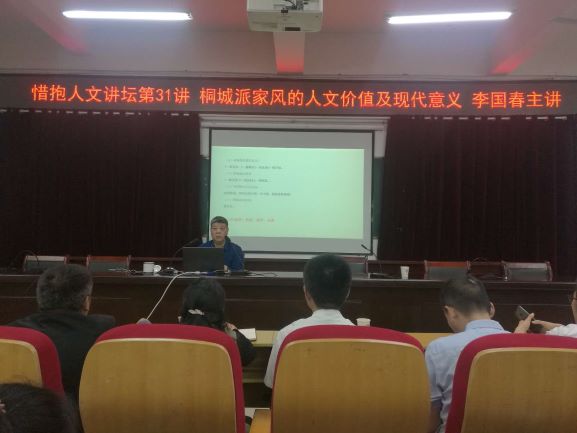 5月13日,由桐城師範高等專科學校主辦,桐城派學術研究中心、學生處、校團委承辦,桐城文化愛好者協會協辦的惜抱人文講壇第31講在以智樓一樓報告廳舉行,邀請桐城本土的桐城派研究專家李國春,主講“桐城家風的人文價值及現代意義”。來自不同專業的對傳統文化感興趣的一百餘名學生聆聽了講座,教務處副處長主持講座。