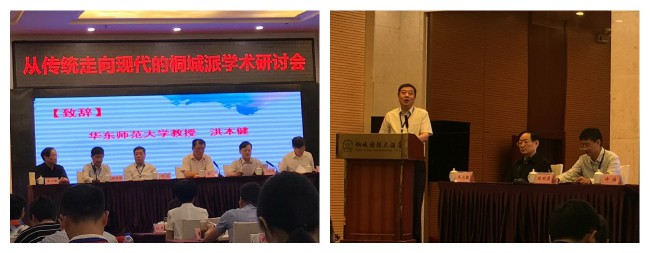 華東師範大學文學院洪本健教授,南京大學文學院許結教授分別致辭。洪本健教授講述了近百年來桐城派研究的曲折曆史,介紹了1985年第一屆全國桐城派研究學術研討會召開的背景和會議盛況,肯定桐城派是一份寶貴的文化遺產。許結教授強調了桐城派文章的美學價值,堅信本次會議將是桐城派研究的一個新的光輝起點。並即興賦詩一首:“又入桐城境,鄉情撲麵來。辭章成舊冊,考據帶新彩。格調因聲起,神思對象開。千秋功過也,吟讚複徘徊。”作為桐城人,許教授表達了對家鄉文化的深厚感情。