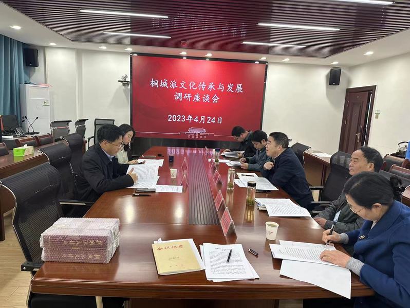 4月24日下午,桐城市委宣傳部召開桐城派文化傳承與發展調研座談會,安慶市委宣傳部副部長王祥,桐城市委常委、宣傳部長殷銳以及桐城市相關部門領導和桐城派文化研究專家參加。桐研中心副主任陶家韻應邀參加座談會。