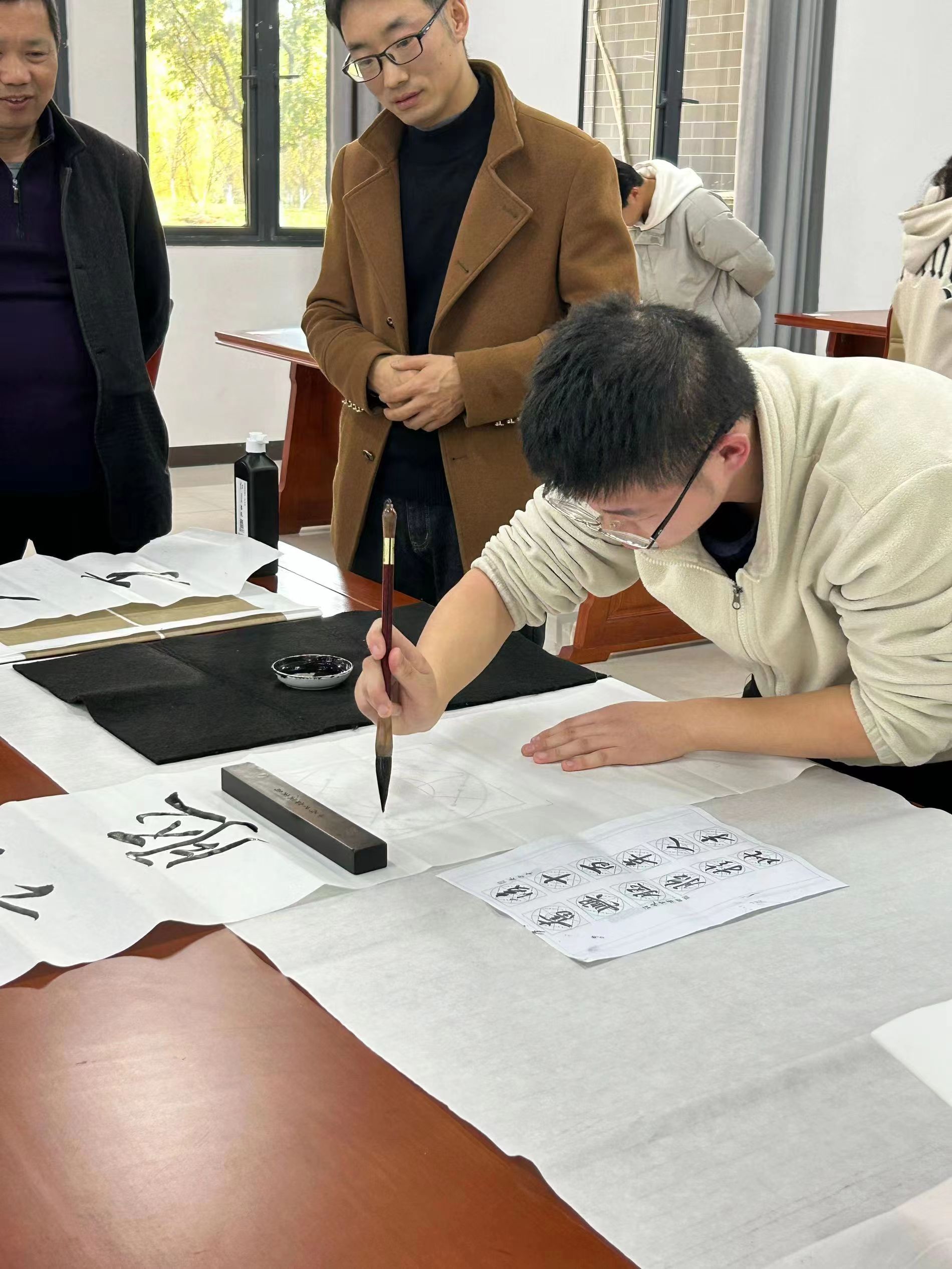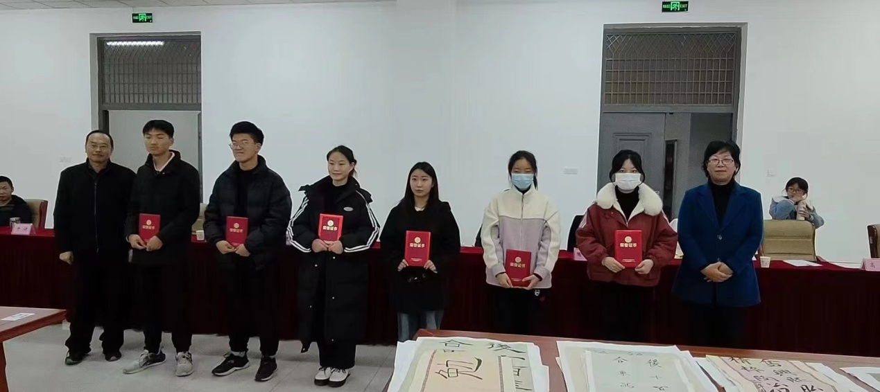 比賽現場,同學們揮斥方遒、大展才藝,相互切磋、相互學習。最後,來自我校,安徽省桐城派研究會和桐城中學的五位評委現場評選出一、二、三等以及優秀獎。