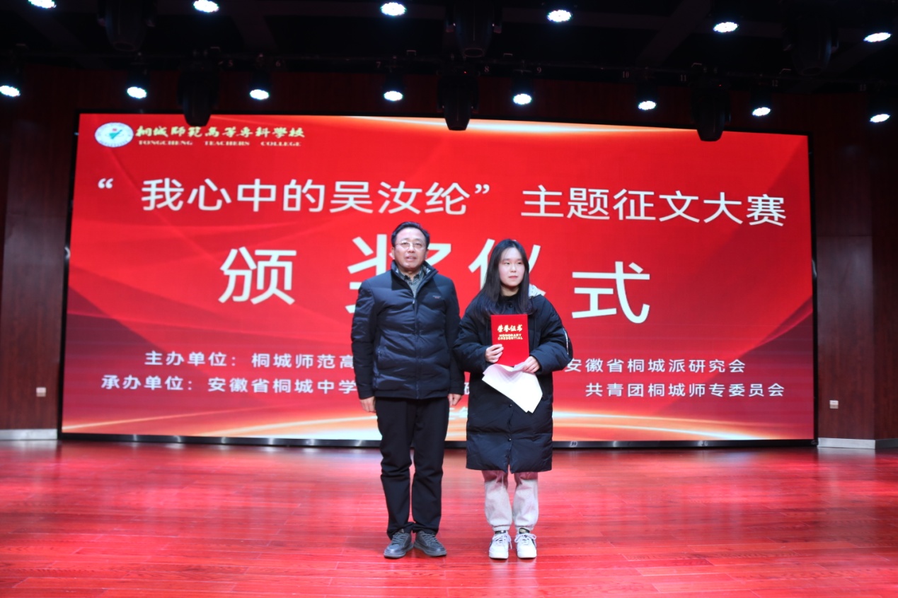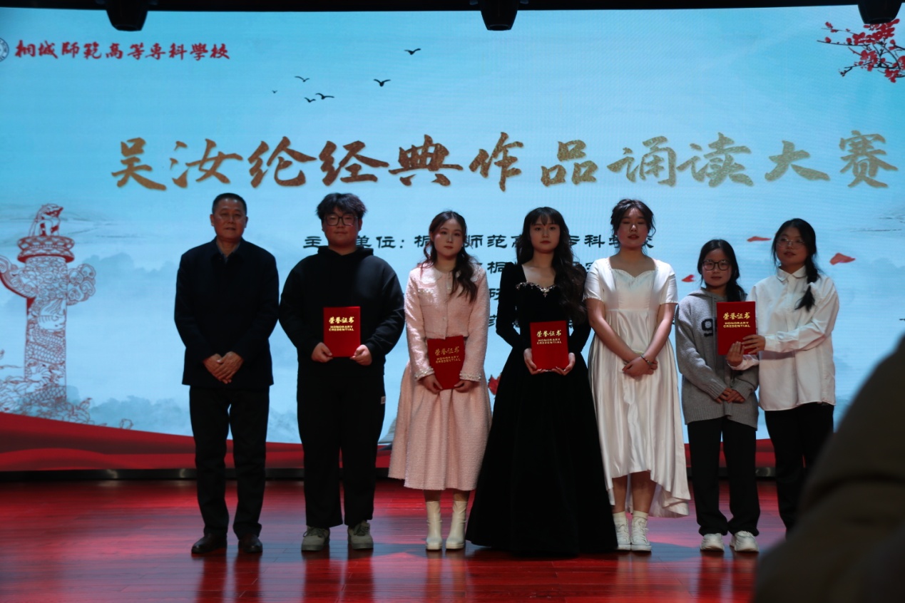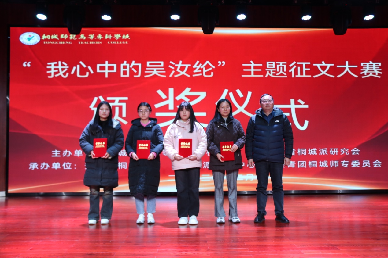為深入學習貫徹習近平文化思想和習近平總書記在文化傳承發展座談會上的重要講話精神,弘揚中華優秀傳統文化,傳承發展桐城派,構建特色校園文化,豐富學生業餘生活,加強校際交流。12月21日,由桐城師範高等專科學校和安徽省桐城派研究會聯合主辦,安徽省桐城中學,桐城派研究中心,校學生處和校團委共同承辦的“吳汝綸經典作品誦讀”大賽暨“我心中的吳汝綸”征文比賽頒獎儀式在音樂廳舉行。校黨委書記王子龍,桐城市人大常委會主任江學潮,安徽省桐城中學黨委書記、校長曹向東,校黨委委員、宣傳部長伍建強出席儀式並為獲獎選手頒獎。桐城派研究中心、校學生處、校團委和藝術與設計係相關負責人參加活動。