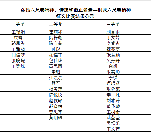 11月30日,由桐研中心主辦、校團委、桐城文化愛好者協會承辦的“弘揚六尺巷精神,傳遞和諧正能量”征文比賽正式拉開帷幕。