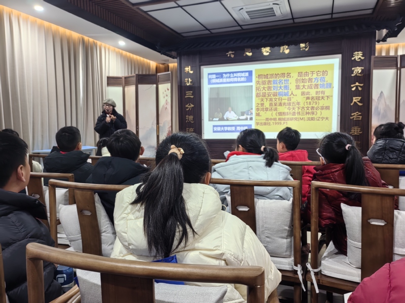 本次培訓圍繞桐城派的當代價值、傳承途徑、保護推廣等方麵,以通俗的語言和小學生喜聞樂見的方式講述了桐城派文化的文脈傳承、人文精神和思想精華。講座內容通俗易懂,深入淺出,針對性強,讓小學生對桐城派在傳承發揚工作有了更清晰的認識。
