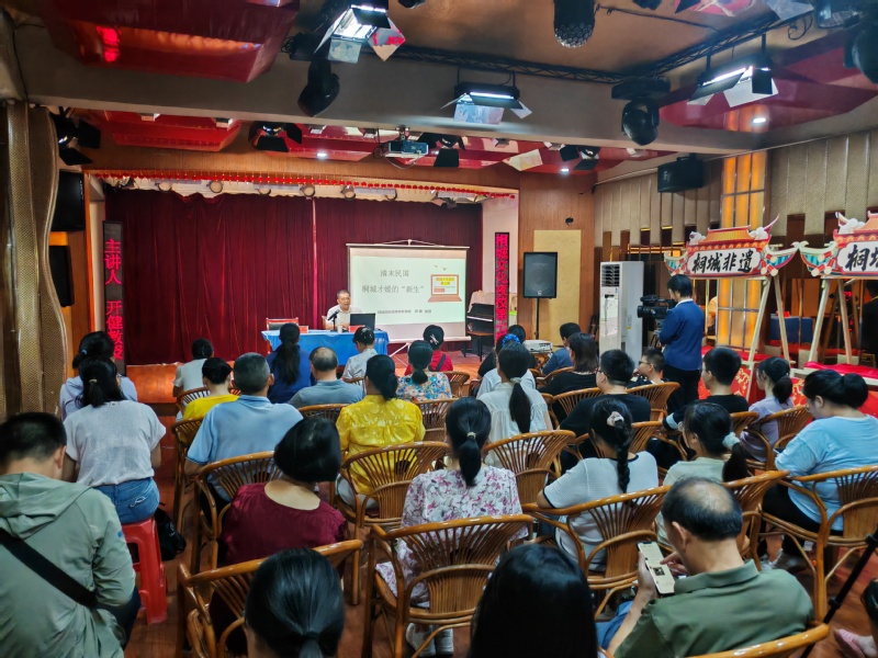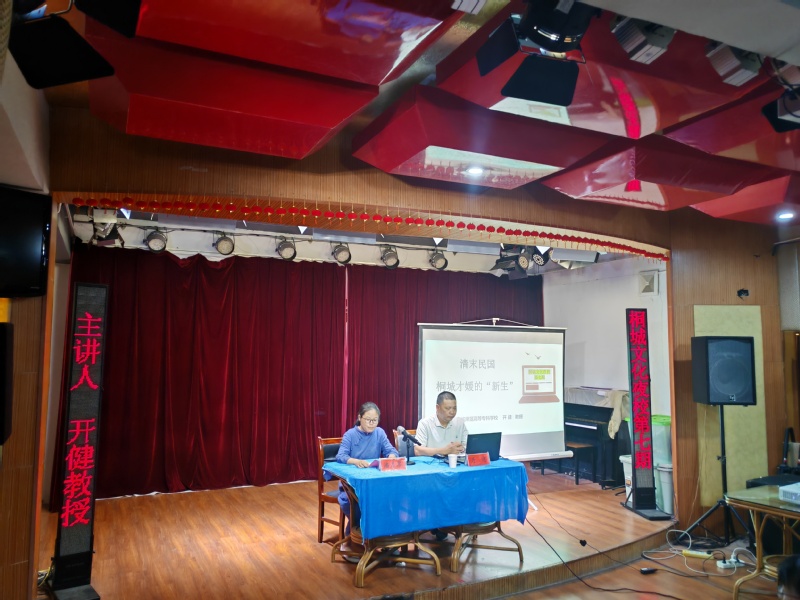 2025年7月17日晚,文化館一樓小劇場座無虛席,原定40人的規模增加到57人。此次開講嘉賓 由桐研中心成員、桐城師範高等專科學校教授、安徽省桐城派研究會理事,安徽大學桐城派研究中心兼職研究員開健擔任,桐城市委宣布部副部長潘月琴主持了此次講座。
