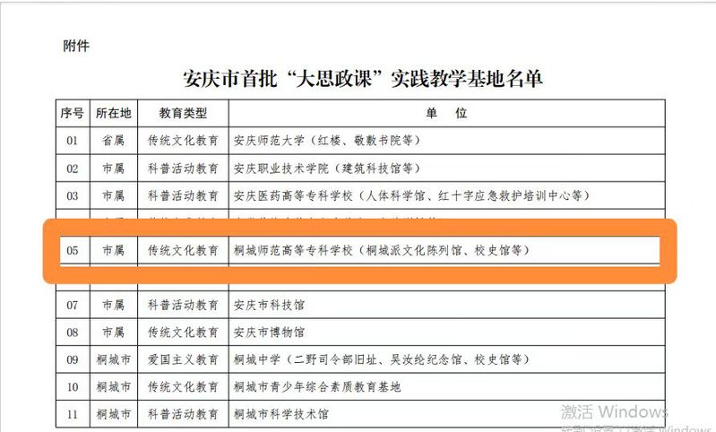 近日,中共安慶市委宣傳部安慶市教育體育局印發通知(教體高〔202587 ),命名33家單位為大思政課實踐基地”,我校“桐城派文化陳列館”、“校史館”成功入選。