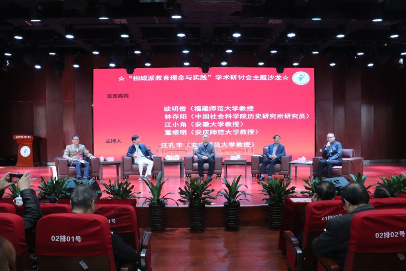 開幕式結束後舉辦了主題沙龍,邀請林存陽研究員、歐明俊教授、江小角教授、董根明教授圍繞“桐城派教育理念與實踐”主題作了專題發言。主題沙龍由安慶師範大學人文學院院長、安徽省桐城派研究會副會長汪孔豐教授主持。