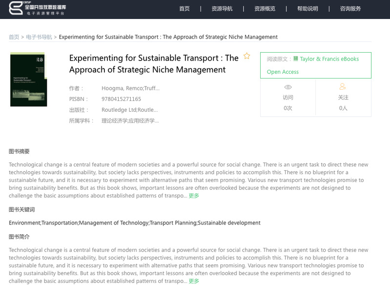 電子書導航收錄了各種不同來源的電子書,並進行了元數據的整合,可以實現一站式檢索,並收集了電子書的封麵,簡介,關鍵詞等相關數據,封麵讀者使用。