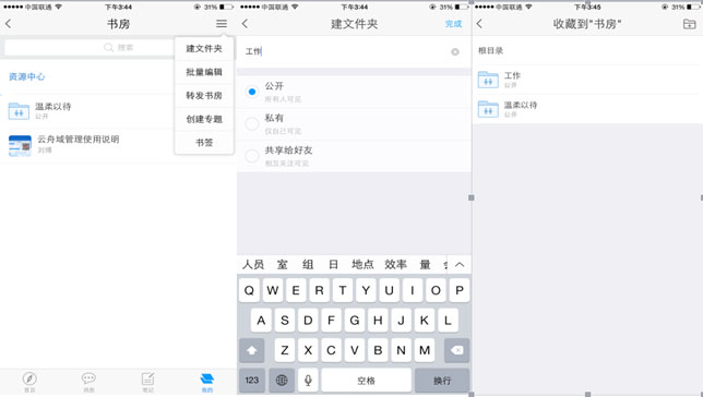 3.學術交流的平台 在移動圖書館中,讀者可以查看好友的書房、好友共享的筆記等,同時可以通過小組討論、發消息等方式及時溝通思想,實現讀者與讀者之間、讀者與作者之間的學術交流。