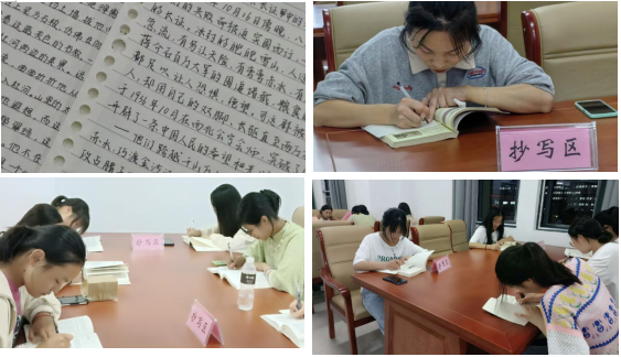 本次活動吸引了不少同學前來參加,學校圖書館還專門開辟了安靜舒適的抄寫區域,並提供紙張和筆具,使讀者在一筆一劃的抄寫中進一步加深對書籍的理解與感悟。活動開始後,來館參與抄寫接力的學生絡繹不絕,一桌一椅、一紙一筆。隨著筆端,一筆一畫浸入心底,書中的經典文段,以不同的字跡躍然紙上。此次活動收集了許多同學的優秀作品,不同的段落,不同的筆跡,懷揣不同心情坐在抄書角前的人,擁有著共同的喜好,共同享受握著筆時片刻的寧靜。