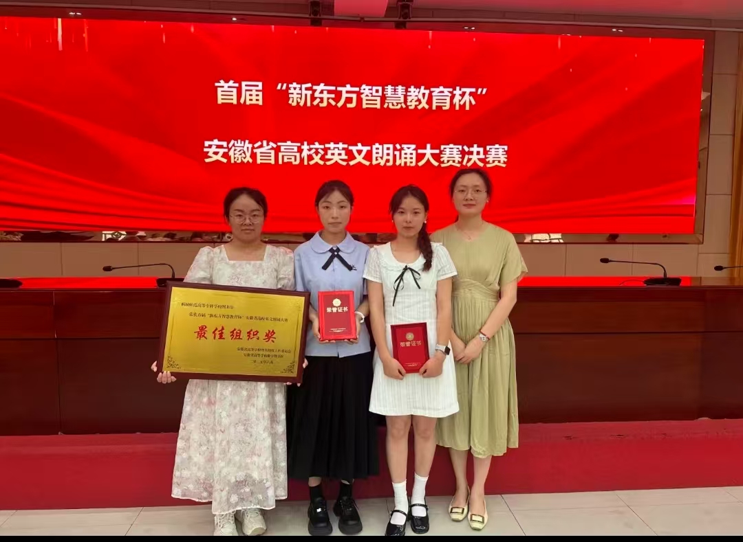 6月6日,由安徽省高等學校圖書情報工作委員會、安徽省高等學校數字圖書館主辦,合肥師範學院圖書館承辦,新東方教育協辦的“新境遇新才 外語傳華聲”英語朗誦大賽圓滿落幕。比賽吸引了安徽省內30餘所高校的數千名學生踴躍參與,大家以英語為媒介,講述中國故事,傳播中國文化。我校學生朱梓靚、夏思圓榮獲高職高專組一等獎,董潔等9名同學榮獲高職高專組三等獎,圖書館榮獲最佳組織獎。