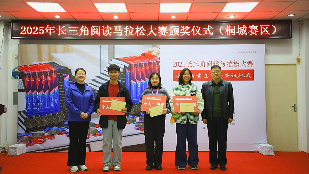 10月25日,2025年長三角閱讀馬拉鬆大賽(桐城賽區)順利完賽。在這場匯聚了8支隊伍、40名閱讀高手的激烈角逐中,我校5名學子組成的參賽團隊——“向日葵”隊表現卓越,憑借穩定的整體發揮和出色的團隊協作勇奪團體項目第一名,團隊成員曹元祥同學更以深厚的閱讀功底一舉斬獲個人總分第一名及“閱讀質量獎”,充分展示了我校學子優秀的綜合素質與蓬勃向上的精神風貌。