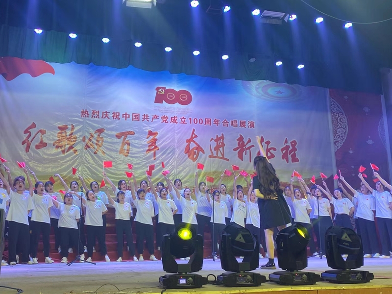 王子龍書記在展演結束後指出此次展演我校黨史學習教育係列活動之一,以傳唱紅色經典的方式回顧中國共產黨波瀾壯闊的百年征程,引領我校師生追尋曆史根脈,感悟初心使命,以史鑒今砥礪奮進,以優異成績慶祝中國共產黨成立100周年