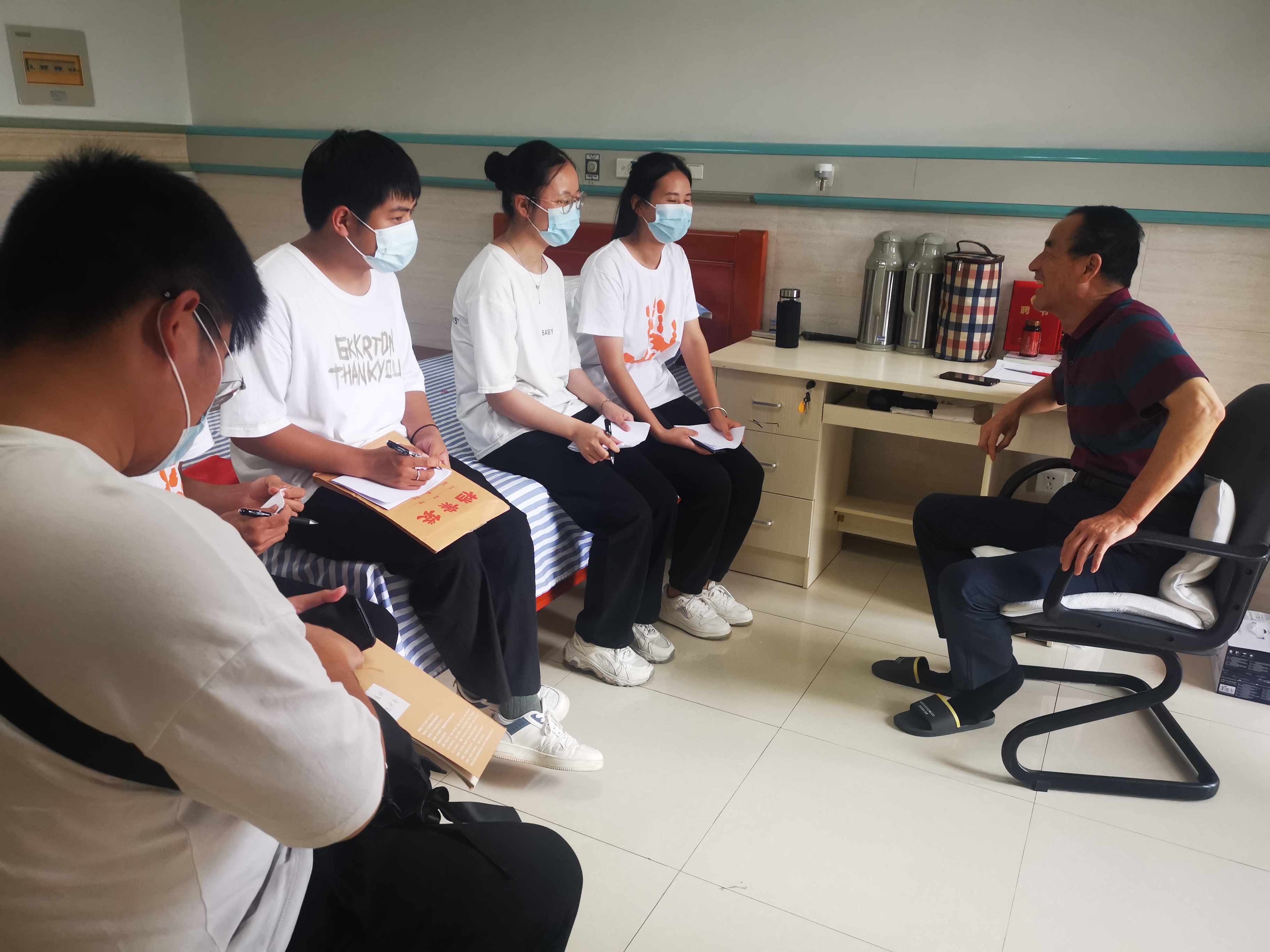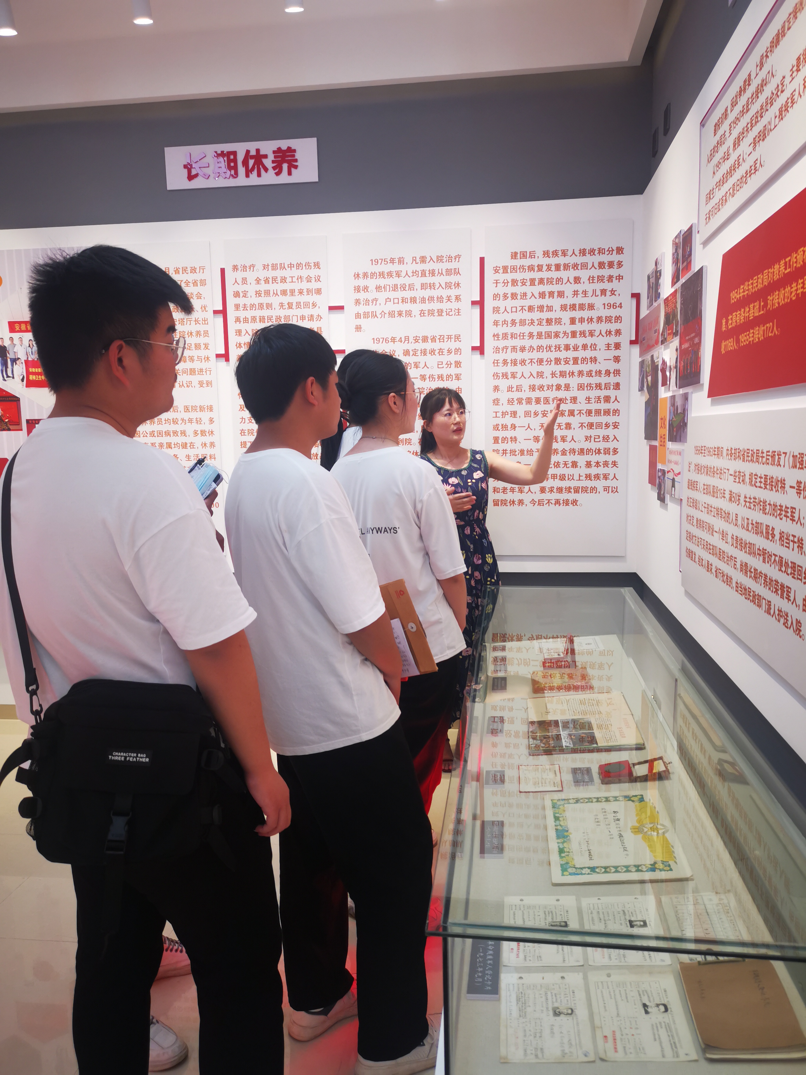 在紅色革命舊址了解到的英雄事跡深深地震撼了每一位團隊成員,以往這些英雄人物隻是出現在課本裏、講解牌裏、影視劇裏,隊員們鮮少在生活中見到真正的戰鬥英雄。為此,團隊一行又特意造訪了安徽省榮軍醫院,拜訪了李良濤、夏軒虎兩位革命英雄,聽他們講述他們經曆過的那段血雨腥風、槍林彈雨的故事。隨後,隊員們還參觀了榮軍醫院新建立的展陳館,從榮軍醫院的發展曆程和老物件、舊檔案,進一步了解光榮偉大的解放軍戰士們的英勇事跡。