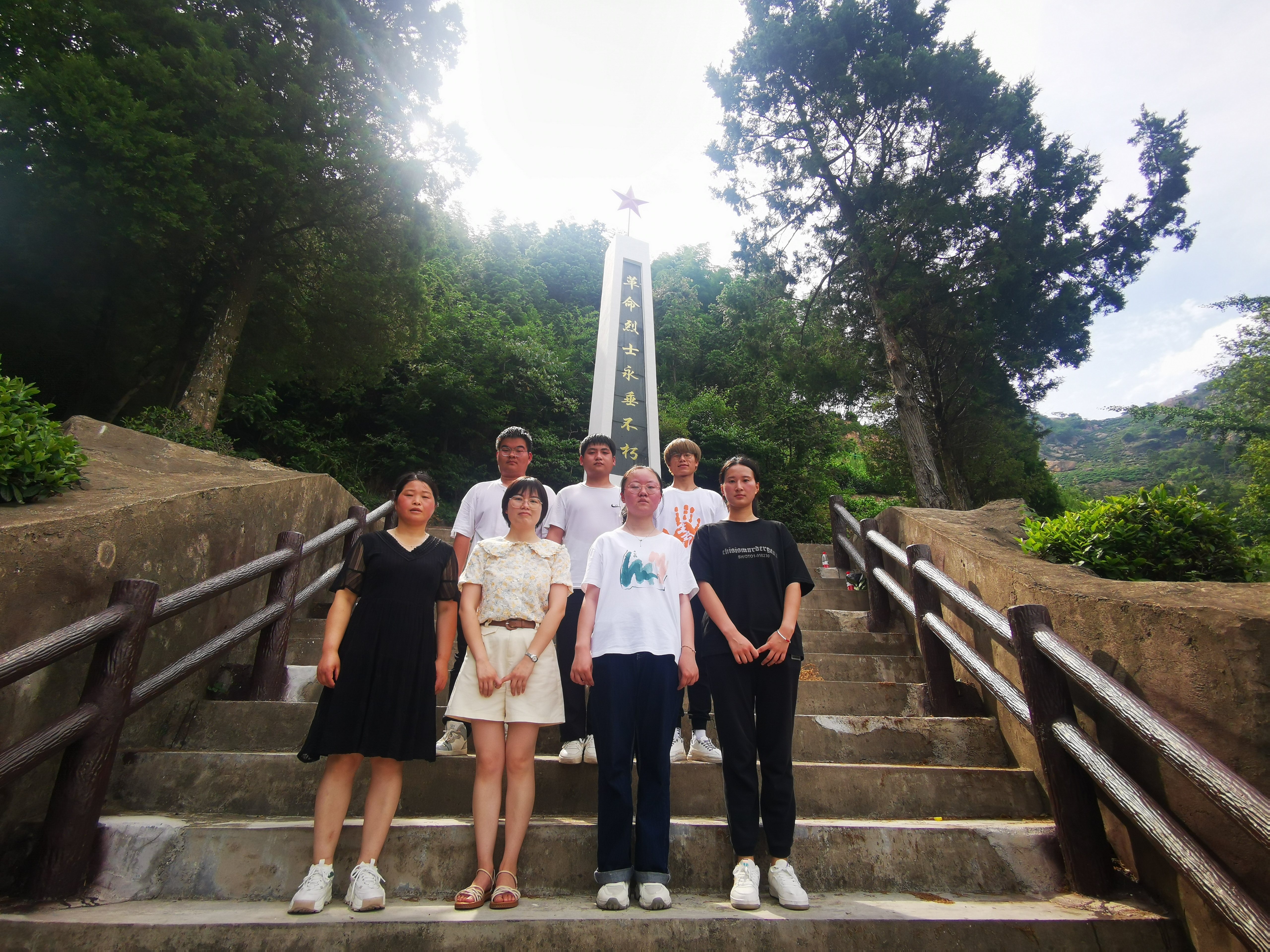 從方家倉啟航,團隊一行又來到了魯谼農民暴動舊址、葉家灣紅色紀念館、歐家嶺起義舊址等。在葉家灣紅色紀念館,團隊成員有幸聆聽到了葉同春烈士後代講述烈士的英勇事跡。震動、感動、觸動……團隊成員們紛紛表示要珍惜現在來之不易的生活,一定要以自己的實際行動,來踐行自己的青年使命。值得一提的是,在探訪歐家嶺起義舊址前,團隊成員們了解到歐家嶺主峰老鷹窩海拔643米,地勢險要,易守難攻,歐家嶺起義是土地革命時期桐城境內規模最大的一次武裝起義,隨即決定要徒步上山,在近40度的烈日下,重走革命戰士當年的路,著實體會到了在那個交通尚不發達的年代,革命戰士的艱辛和不易,以及他們那種堅韌不拔的革命鬥誌和革命必勝的堅定信念。