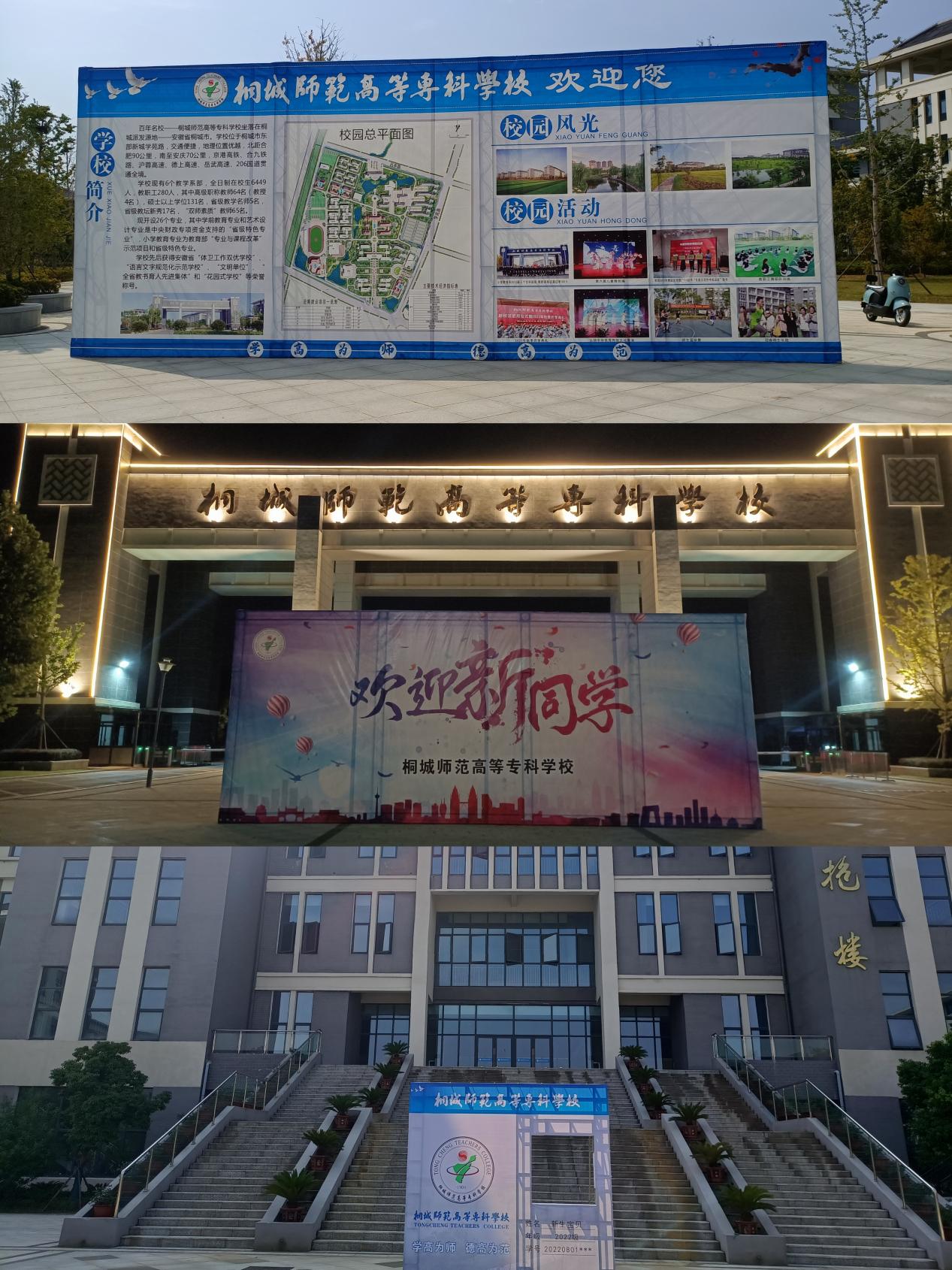 為幫助2022級新生快速了解校園文化,融入校園環境,學校在東門門口、東門入口處、惜抱樓樓前安放了宣傳展板,供新同學拍照打卡,記錄與桐城師範高等專科學校的首次相見。