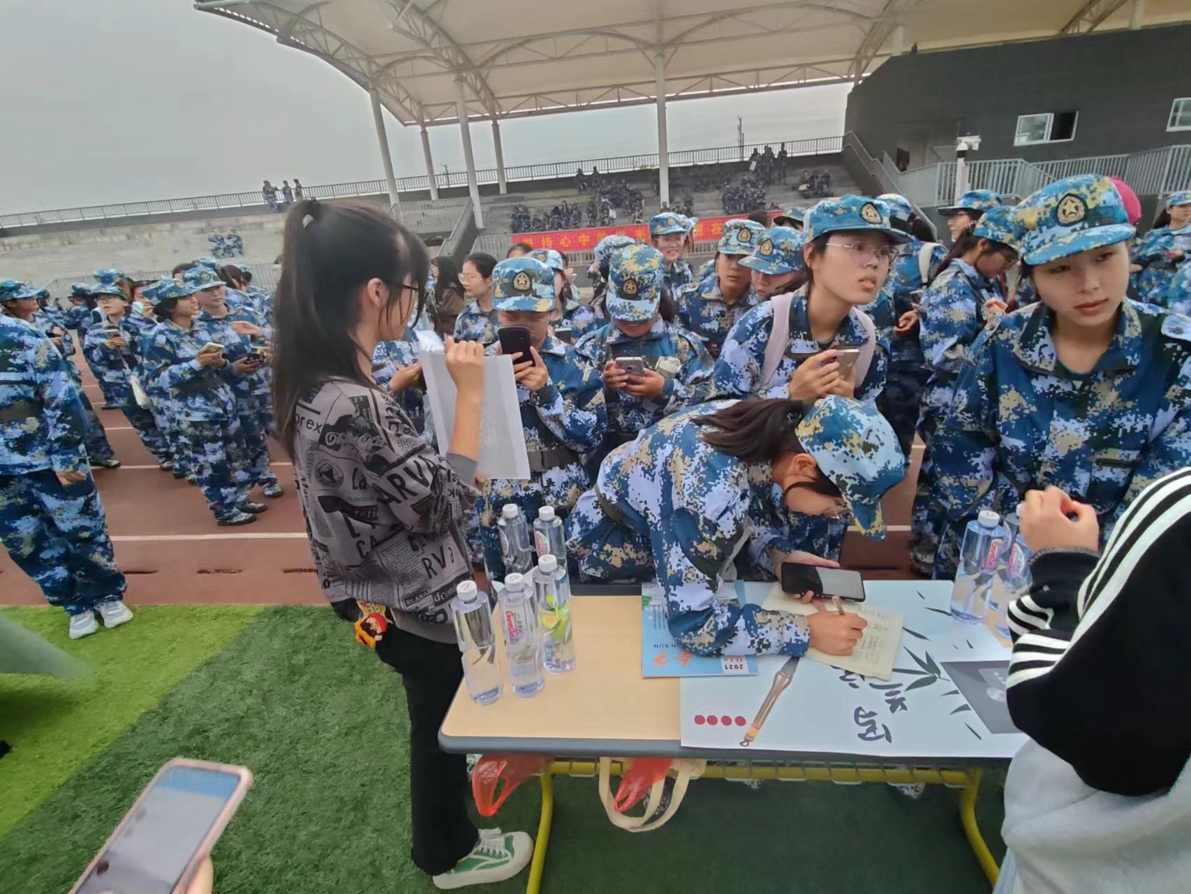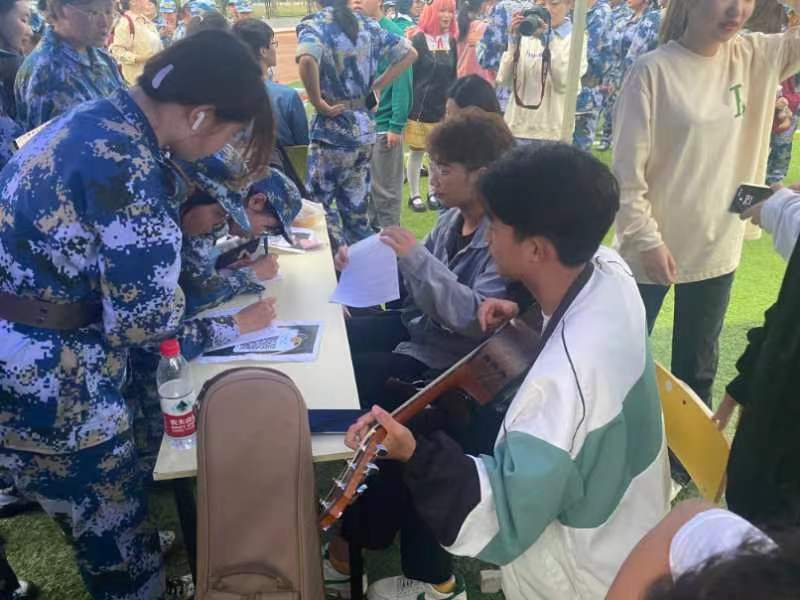 各個社團按照事先安排的順序在操場中央進行集中展示,為新學期的“招兵買馬”而各顯神通。悅耳動聽的音樂、靈動飄逸的舞姿、引起陣陣歡笑的相聲表演,無不吸引著身著迷彩服的新生的目光。