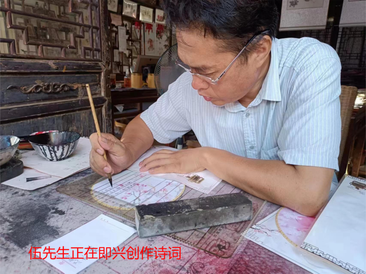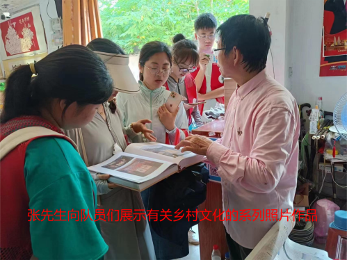 7月28日,調研團隊前往千年古鎮——孔城鎮,拜訪了兩位紮根老街的民間藝人:書畫家伍先樂和攝影家張啟如,就桐城本土文化的傳承與發展進行了深入交流。兩位先生對隊員們的到來表示熱情的歡迎,並積極展示了自己的文創作品。他們或用一首雋永的詩,或用一張沉澱曆史的照片,記錄著、見證著文都桐城的古韻以及新時代下的飛速發展。隊員們細心看、靜心聽,在老街濃鬱的文化氣息中體會著人文薈萃的精神陶冶,並由衷表示從兩位先生的言行之中感受到了無數個平凡的民間藝人在傳承優秀傳統文化陣地上的堅守之心。