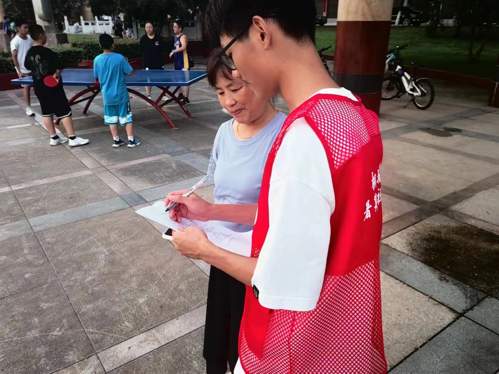 次日,調研團隊前往範崗法治文化廣場就文化站及休閑廣場建設和使用情況進行居民滿意度問卷調查。為了使調查對象更具有普遍性,實踐小組成員將調查對象分為兒童、中年、老年三個不同年齡段的群體。問卷內容主要涉及居民對綜合文化站和社區廣場的了解程度、使用頻率以及公共文化活動的開展情況等。