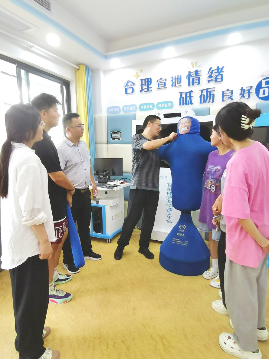 7月20日,在桐城市特教學校校領導的帶領下,團隊師生參觀了特教學校情緒宣泄室、模擬超市、手工教室、玉雕展廳相關功能室,了解了特教學校的學校辦學理念、辦學現狀、取得的成績等。結合特教學校實際需要,團隊師生圍繞學校環境創設、美化設計等方麵,與校領導進行了深入交流,提出了獨具風格的牆繪設計方案和手工製作方案,獲得了桐城市特教學校校領導的認可。