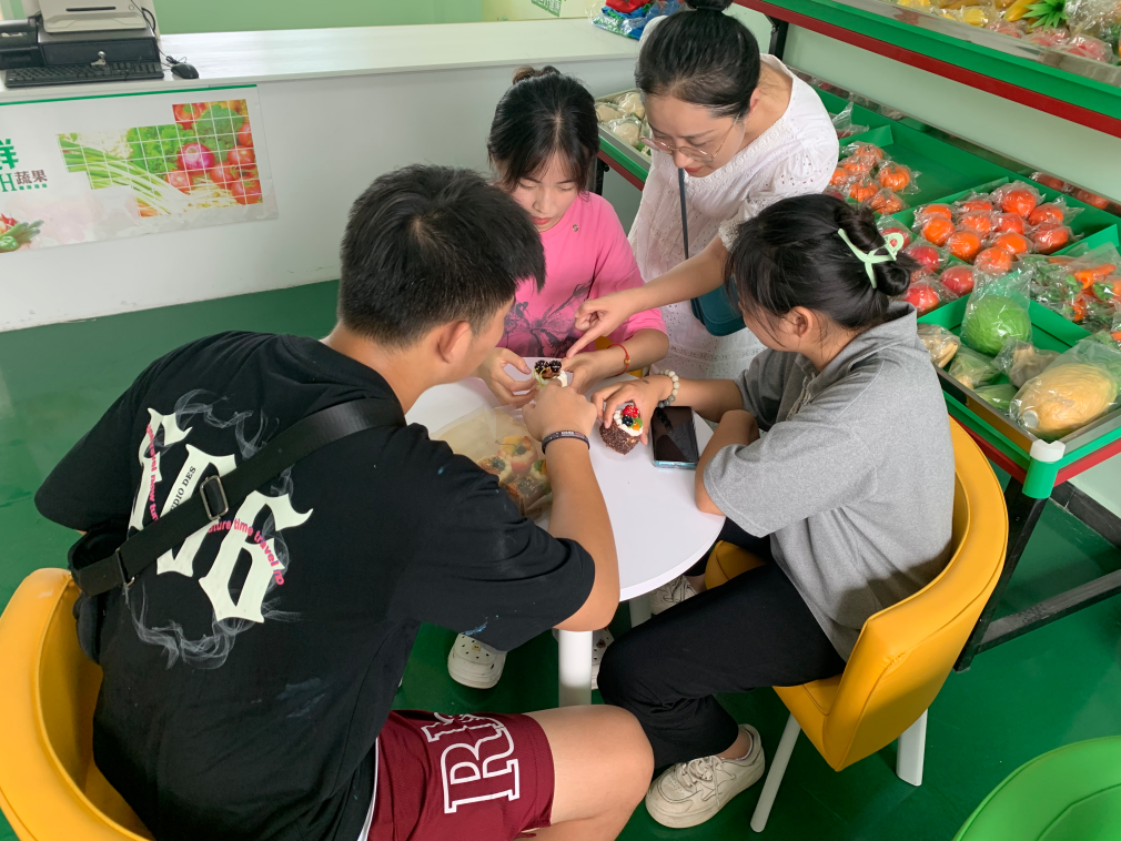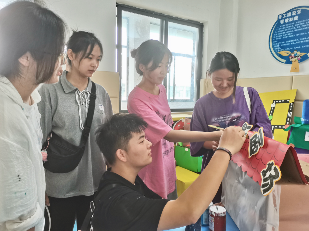 在手工教室,針對特教學校不同班級不同學齡段兒童的需求,團隊成員圍繞語言、美術、遊戲等方麵進行手工創作,為特教學校製作日常教具和下學期特教環境創設的手工作品。