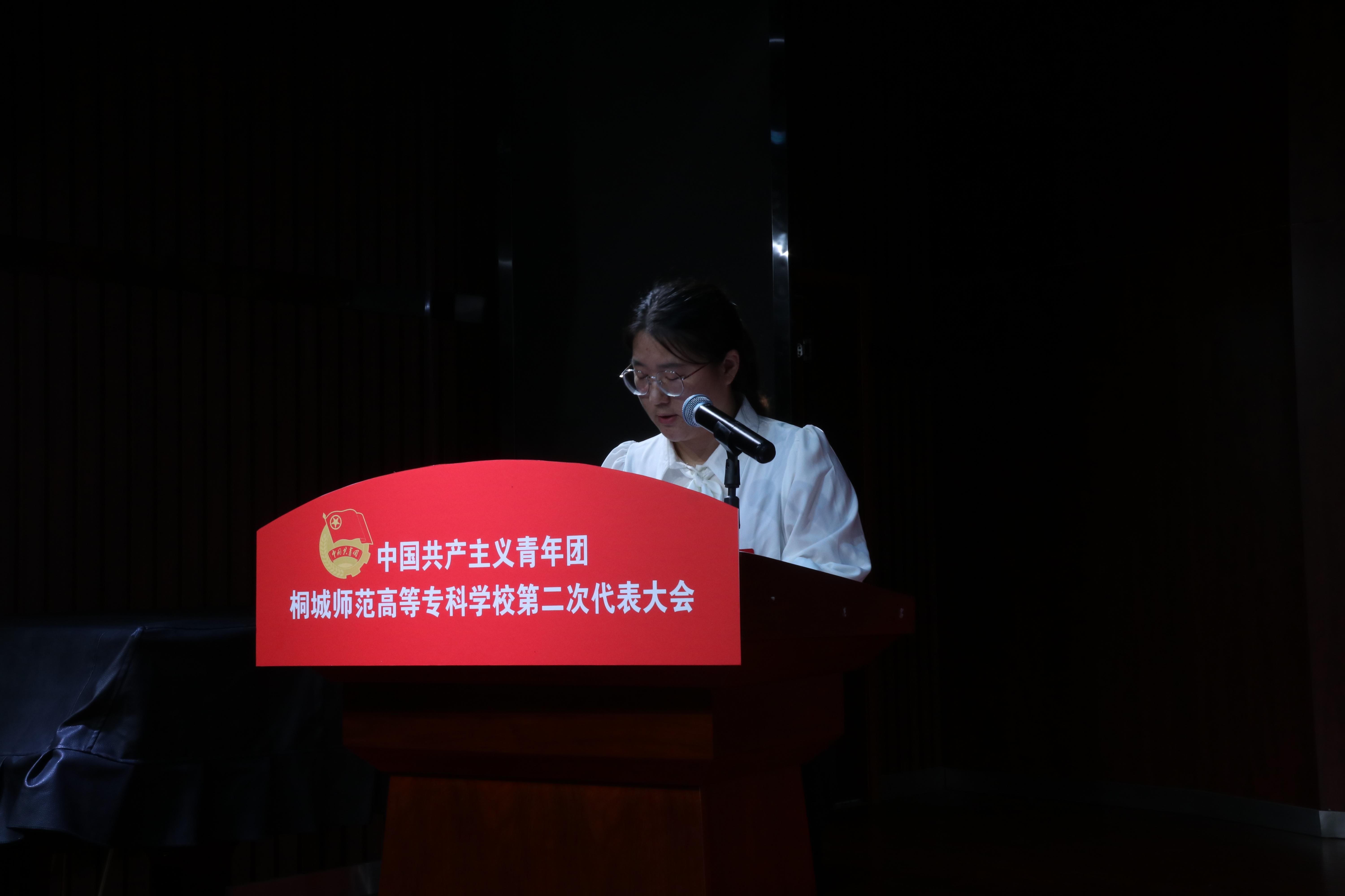 大會審議通過了汪若冰同誌代表共青團桐城師範高等專科學校第一屆委員會所作的題為《青春築夢新時代 篤行不怠向未來——團結帶領全校團員青年為建設高質量發展的師範院校貢獻青春力量》的工作報告。報告係統總結了學校過去五年的共青團工作,並對下一步工作進行了展望和部署。未來五年,我校各級團組織將繼續高舉中國特色社會主義偉大旗幟,堅持以習近平新時代中國特色社會主義思想為指導,深入學習貫徹黨的二十大精神和團的十九大精神,團結帶領全校團員青年,用拚搏奏出時代的強音,用奮鬥輝映青春的足跡,努力開創我校共青團工作又好又快發展的新局麵。