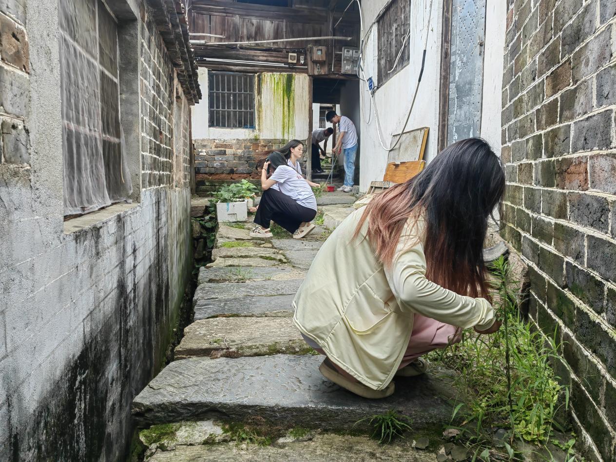 體驗一次誌願者,做環保理念的衛士。唐灣村有明清、民國時期建立保留下來的古民居群。該群四麵環山,依地勢由低向高逐層構築,磚木結構,弄廊縱橫交錯,迂回有致,古民居群是唐灣村曆史文化積澱的見證,也是先民生活智慧的結晶。由於前期雨季,民居內雜草層生,實踐團隊分工協助把雜草全部清除,保持民居內的幹淨整潔衛生。