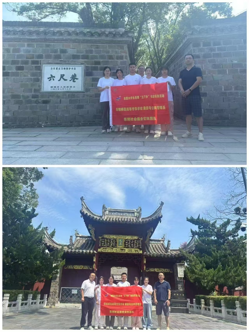 89日至15日,在學校教師劉成龍、胡中軍、胡娟三位老師帶領下,團隊師生一行9人在桐城開展“美文育才 美景育人 美食育心--桐城文旅短視頻推廣服務活動”為主題的暑期社會實踐活動。