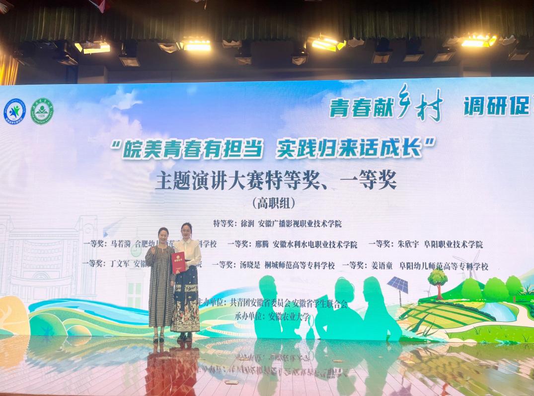 10月20日-21日,由安徽省教育廳、團省委、省演講協會聯合舉辦的“皖美青春有擔當,實踐歸來話成長”第七屆安徽省主題演講比賽在安徽農業大學圓滿舉辦。我校小學教育係湯曉是同學,在全省三十多所學校一百多名選手中脫穎而出,榮獲一等獎的第一名!