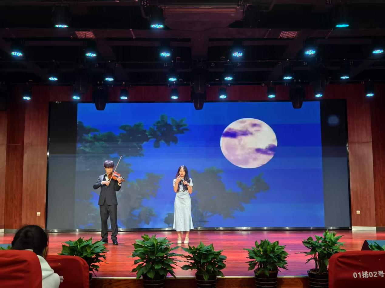 緊張的比賽間隙,曾雯、張文楷同學帶來了小提琴演奏《明月幾時有》。優美的旋律在音樂廳回蕩,為比賽增添了濃厚的藝術氛圍。與此同時,評委們也在認真統計前兩輪的成績,評選出3支季軍隊伍,而積分領先的兩支隊伍則成功晉級第三輪,向冠軍之位發起最後的衝擊。