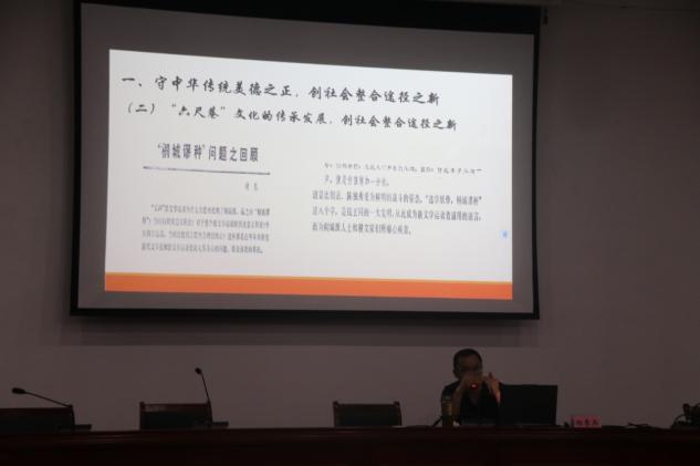 在黨建內容講解中,楊師強調"守黨的初心使命之正,創黨建時代之新"的重要性。他指出,六尺巷文化體現的謙和禮讓精神與黨的作風建設密切相關,領導幹部的家風建設不僅關乎個人家庭,更直接影響黨風政風。通過生動的案例,他闡述了傳統文化在新時代黨建工作中的借鑒意義。