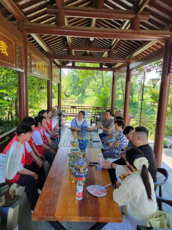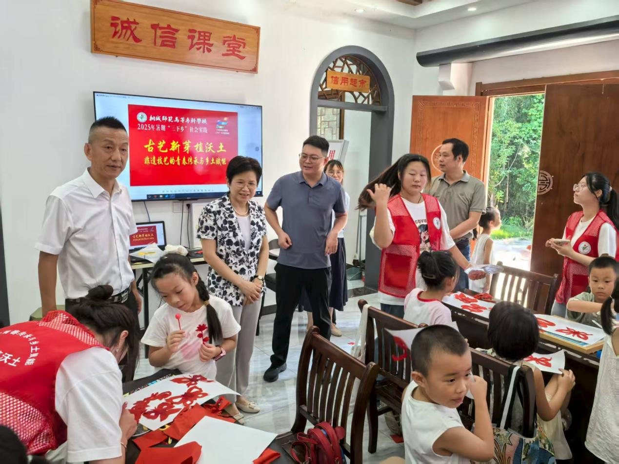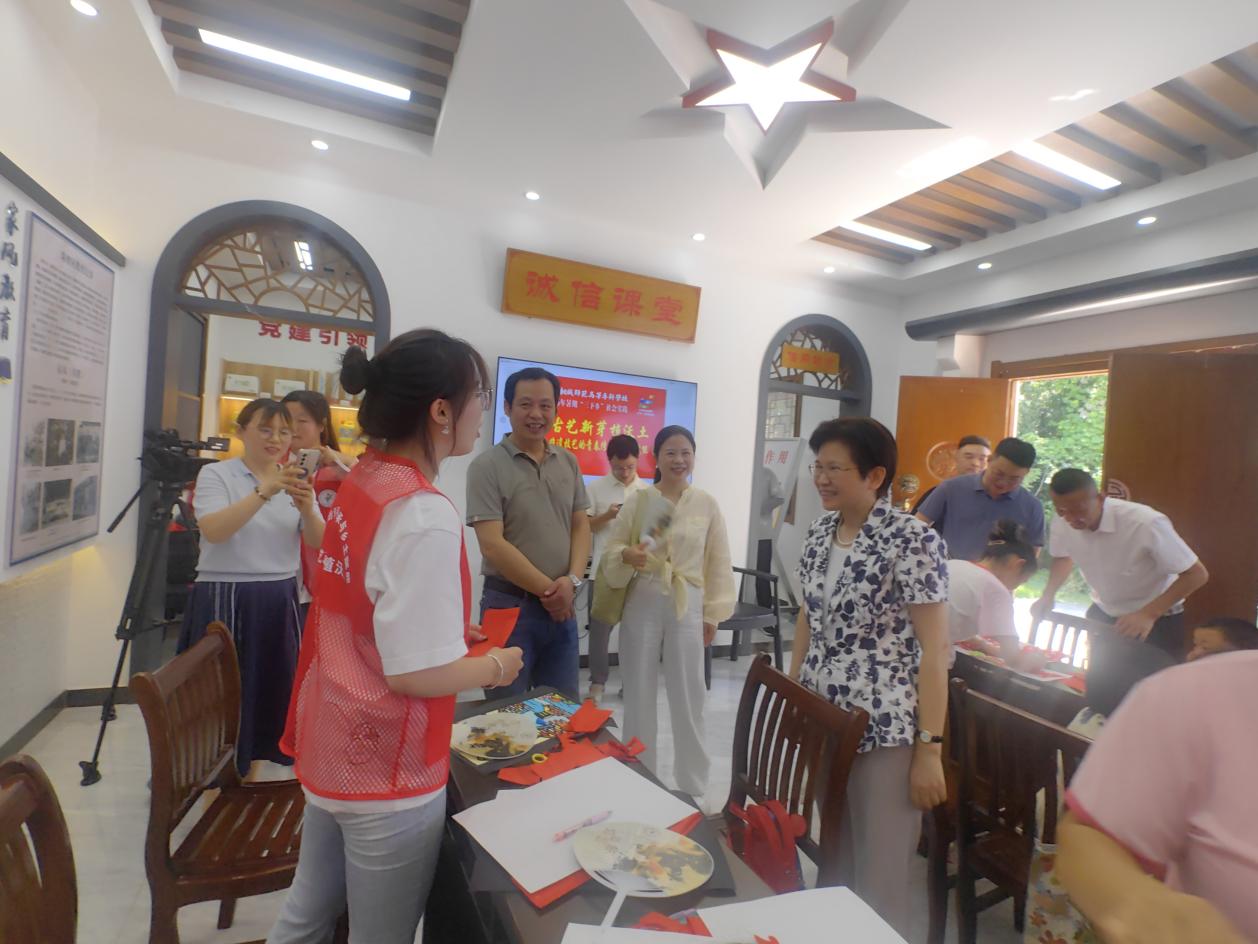 730日上午,校黨委副書記張敏麗帶隊前往桐城市嬉子湖鎮裁襟勵子文化園,看望慰問在此開展暑期“三下鄉”社會實踐的“古藝新芽植沃土——剪紙、琺琅非遺技藝的青春傳承與鄉土賦能”團隊師生,並與大家親切座談,深入了解實踐進展,給予關懷與鼓勵。藝術與設計係主任周琳校團委書記汪若冰、團委副書記、小學教育係黨總支副書記胡二慶和藝術係黨總支副書記倪甜甜陪同。嬉子湖鎮黨委組織委員吳群熱情接待了一行人。